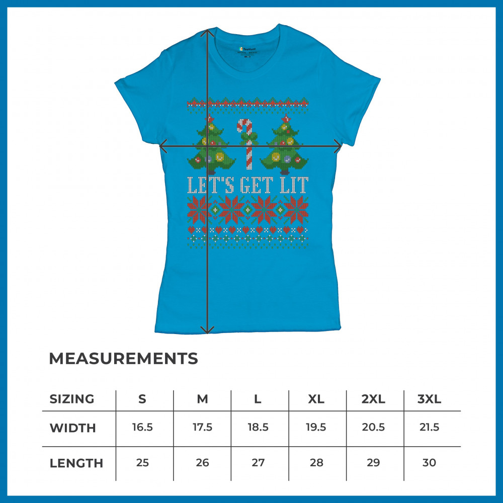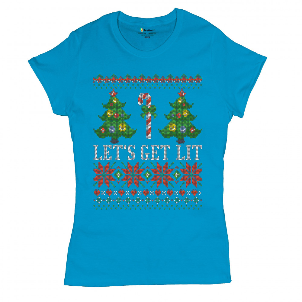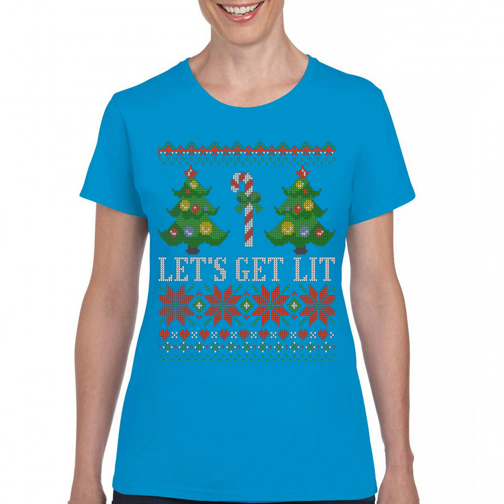 LET'S GET LIT t-shirt ugly sweater merry christmas candy cane women's tee light blue