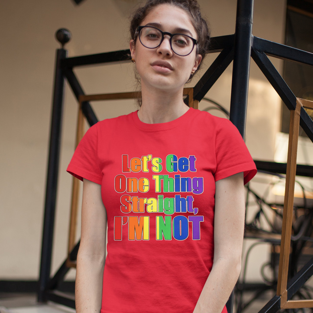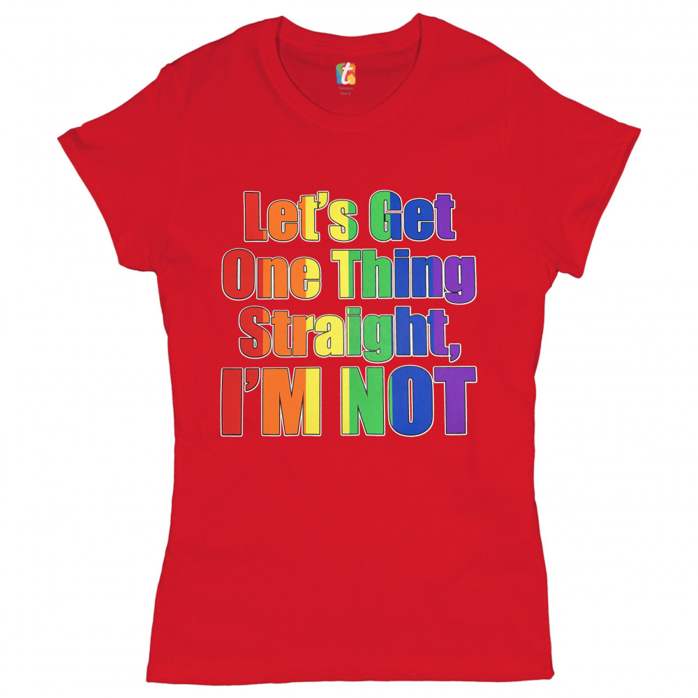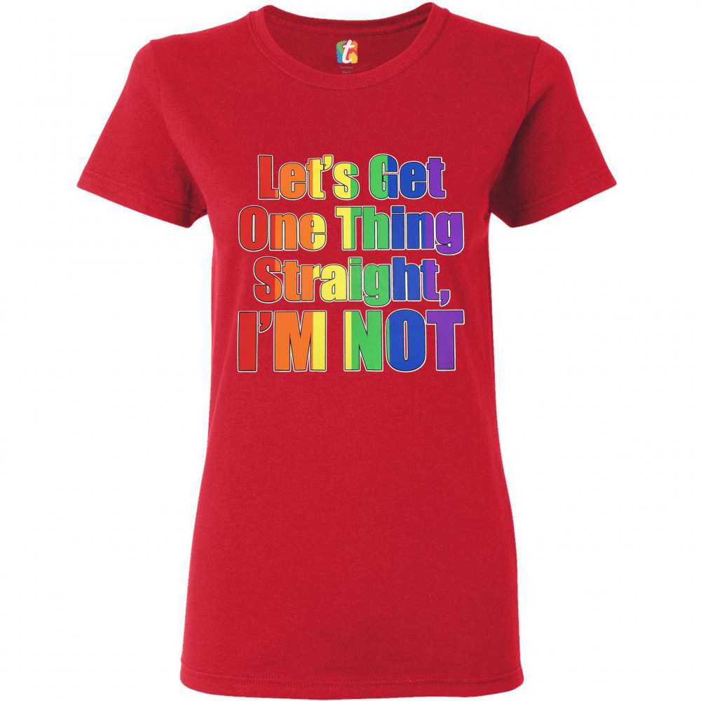 LET'S GET ONE THING STRAIGHT, I'M NOT t-shirt lgbt gay rainbow women's tee red
