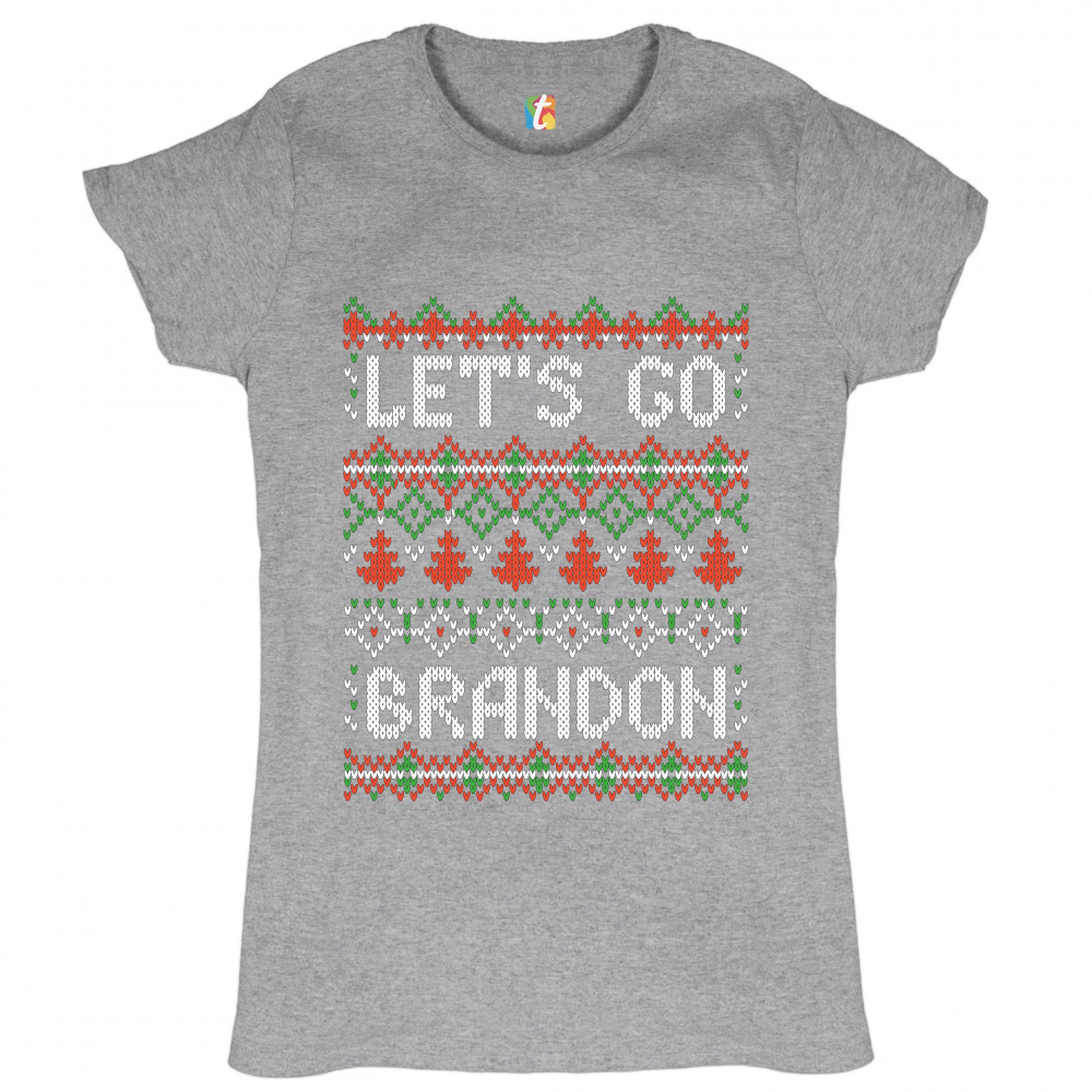 LET'S GO BRANDON t-shirt ugly sweater christmas funny anti biden women's tee gray