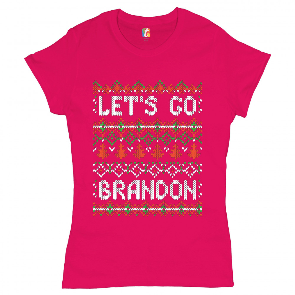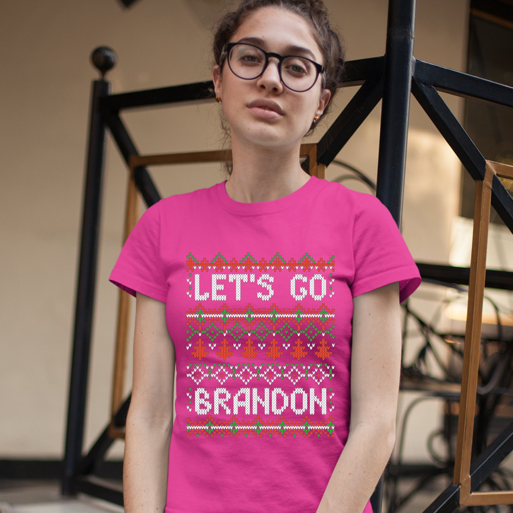 LET'S GO BRANDON t-shirt ugly sweater christmas funny anti biden women's tee pink