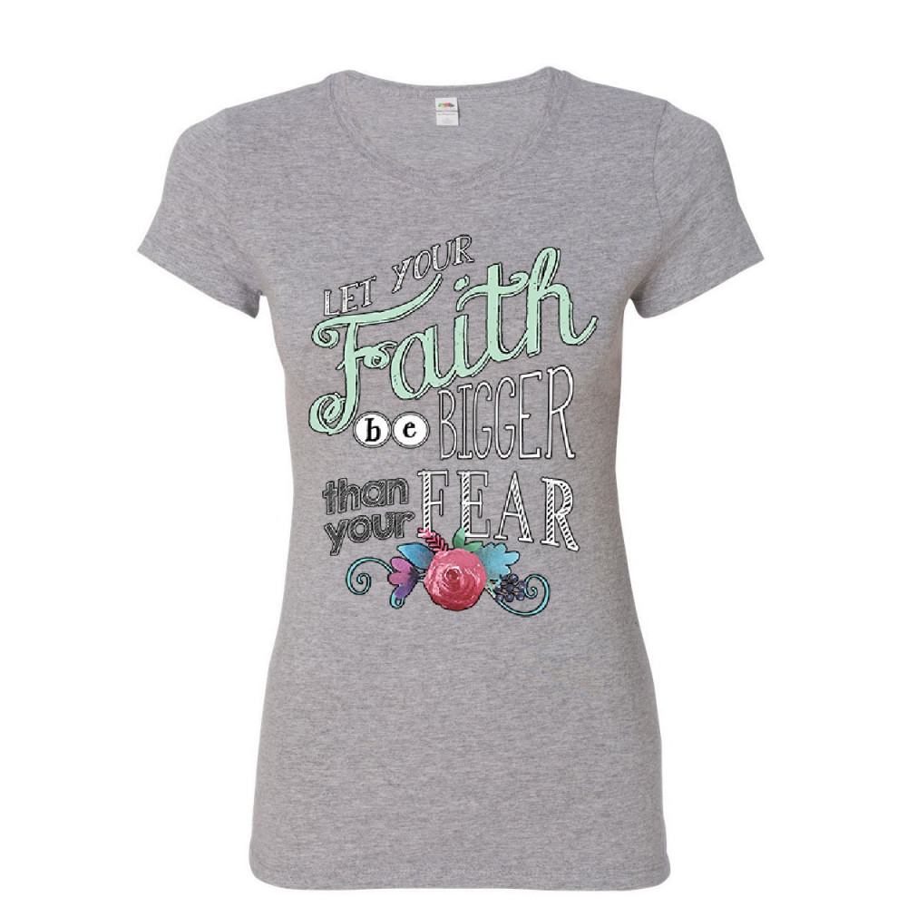 LET YOUR FAITH BE BIGGER women's t-shirt inspiration god religion bible shirt gray