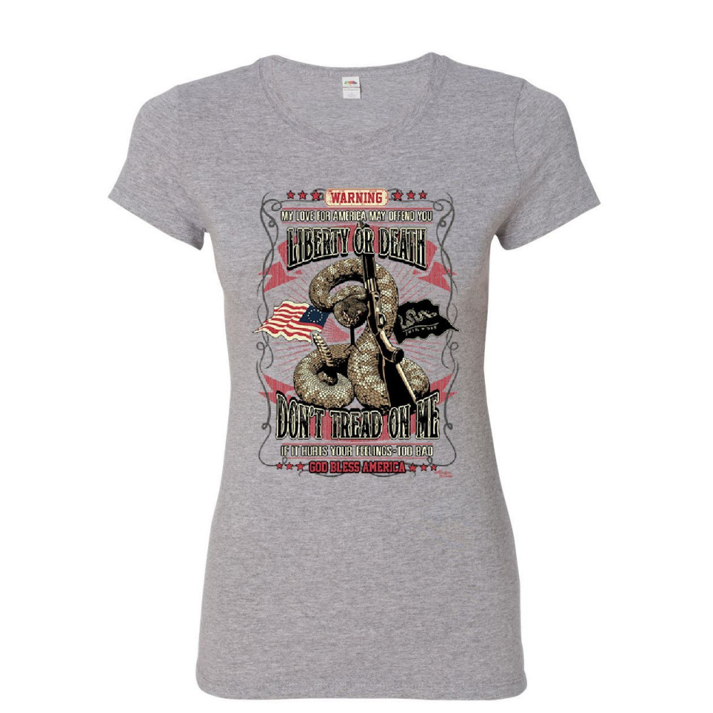 LIBERTY OR DEATH DON'T TREAD ON ME women's t-shirt gadsden flag america shirt gray