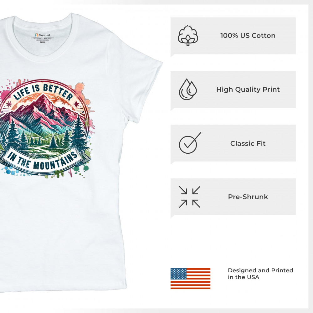 Life Is Better in the Mountains is designed for nature lovers, campers, and trail hikers who find peace in high altitudes. This colorful mountain scene captures wilderness vibes, camping escapes, and weekend hiking energy. Ideal for forest lovers, off-grid adventurers, and glamping fans alike.