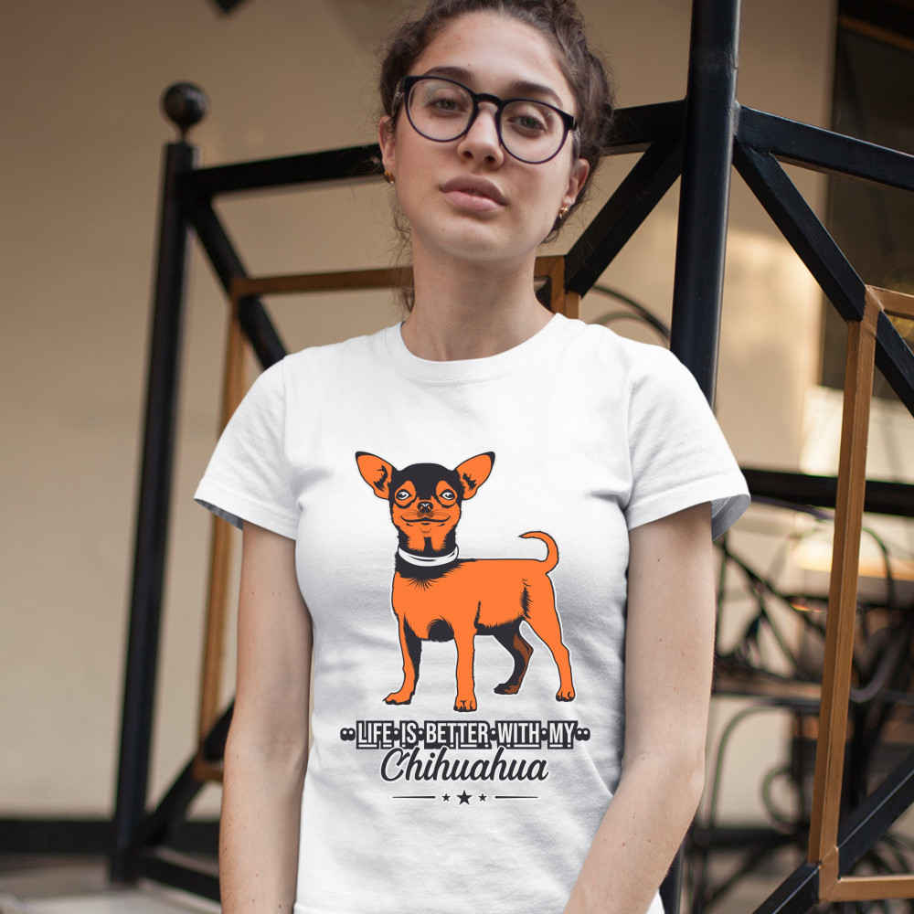 LIFE IS BETTER WITH MY CHIHUAHUA t-shirt toy dog lover cute pet women's tee white
