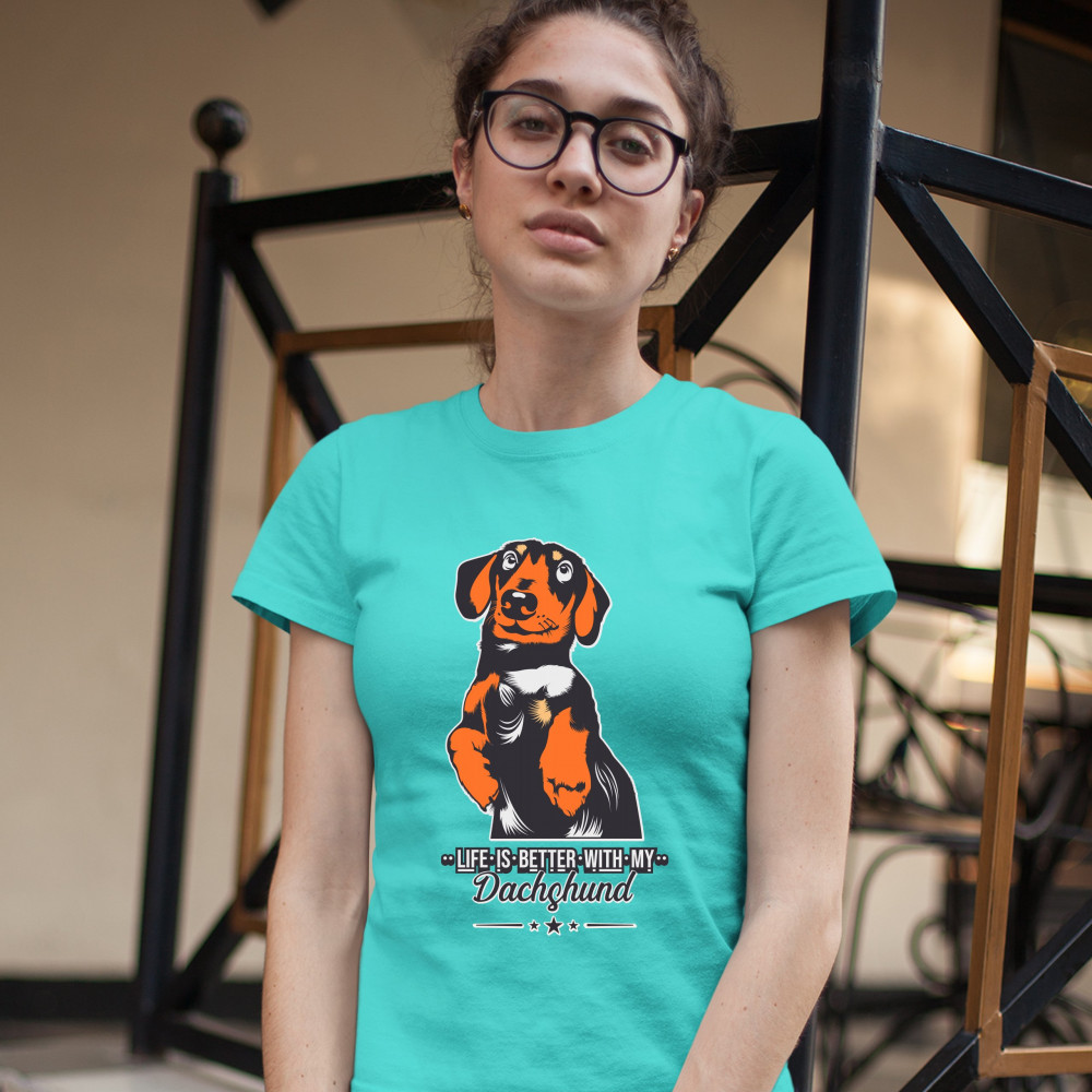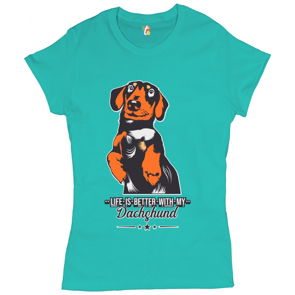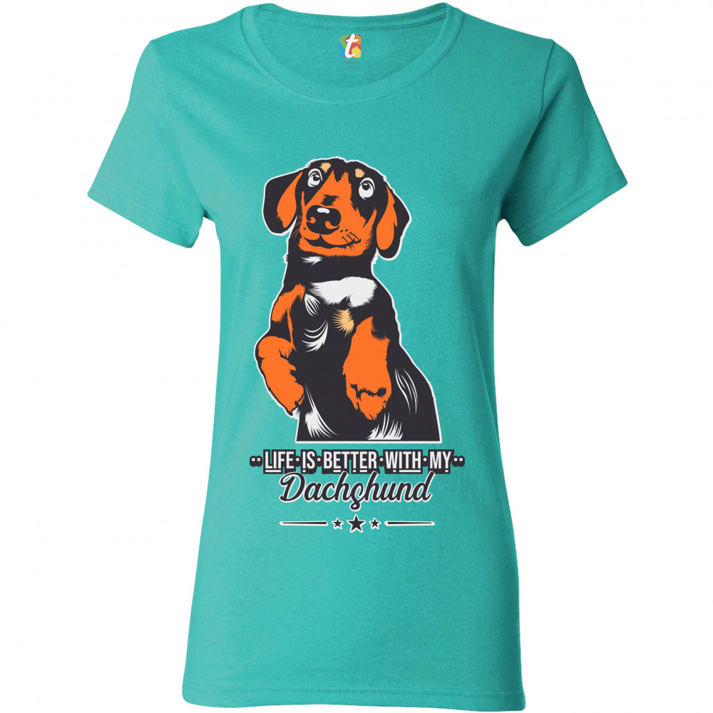 LIFE IS BETTER WITH MY DACHSUND t-shirt pet lover i love my dog women's tee light blue