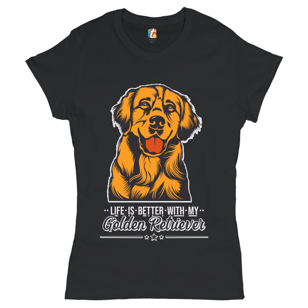 LIFE IS BETTER WITH MY GOLDEN RETRIEVER t-shirt puppy dog owner women's tee black
