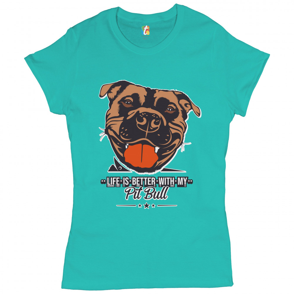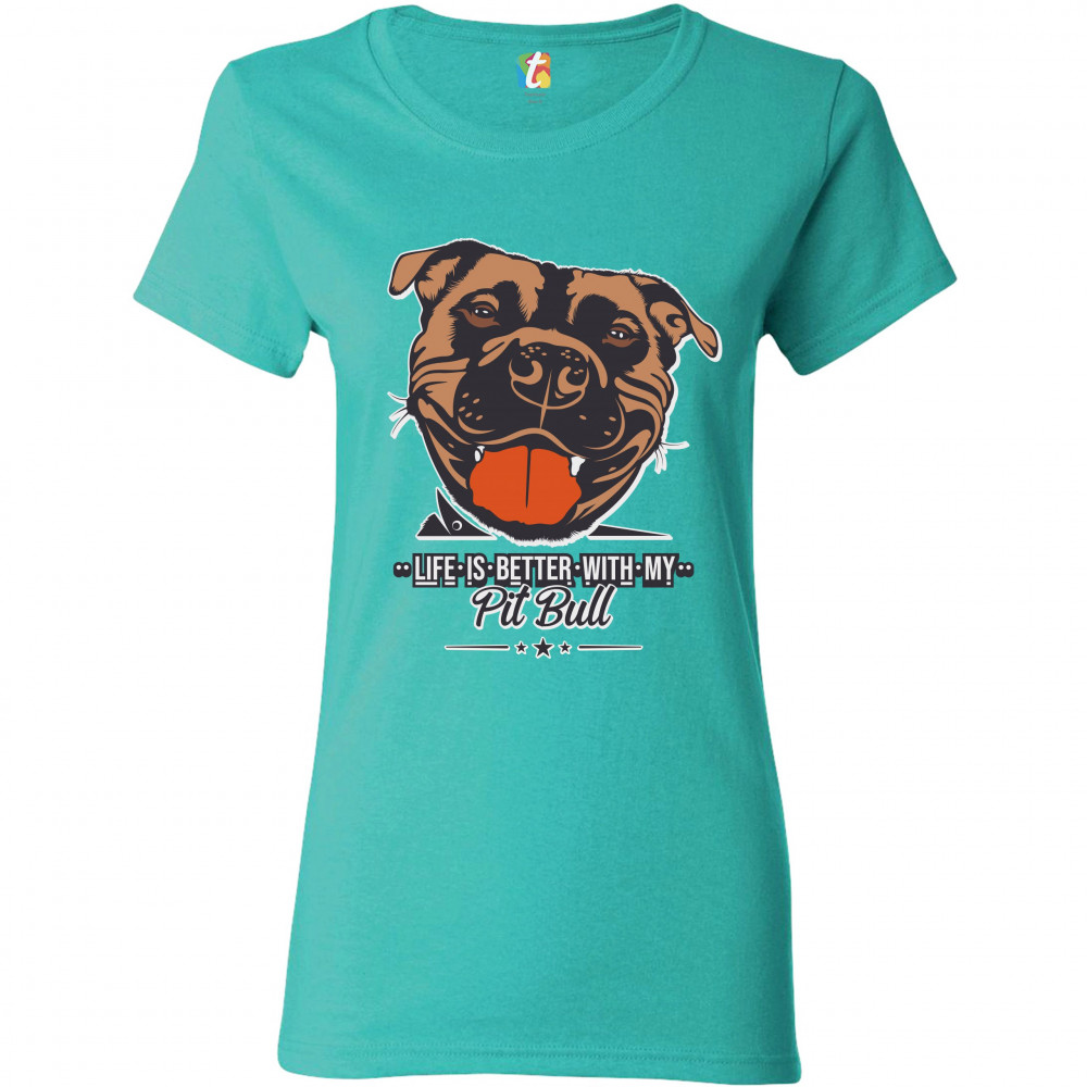 LIFE IS BETTER WITH MY PIT BULL t-shirt i love me dog animal lover women's tee light blue