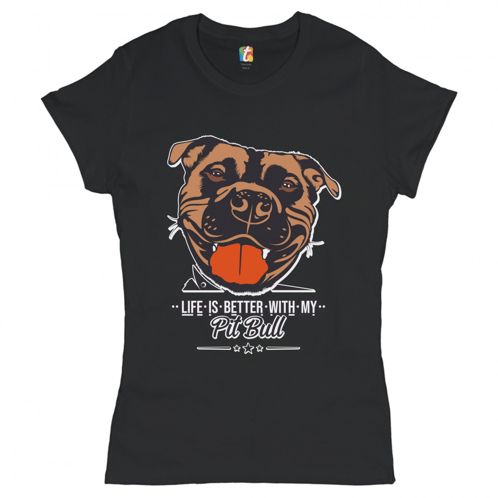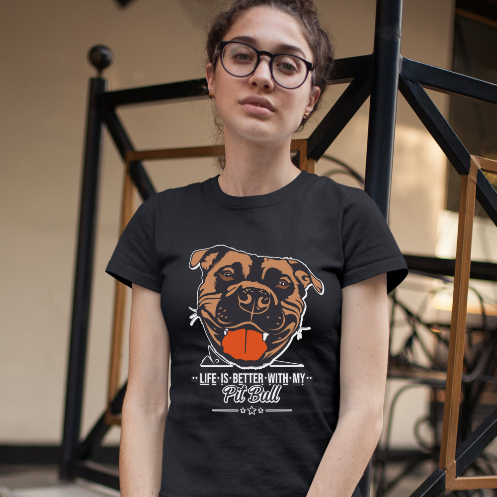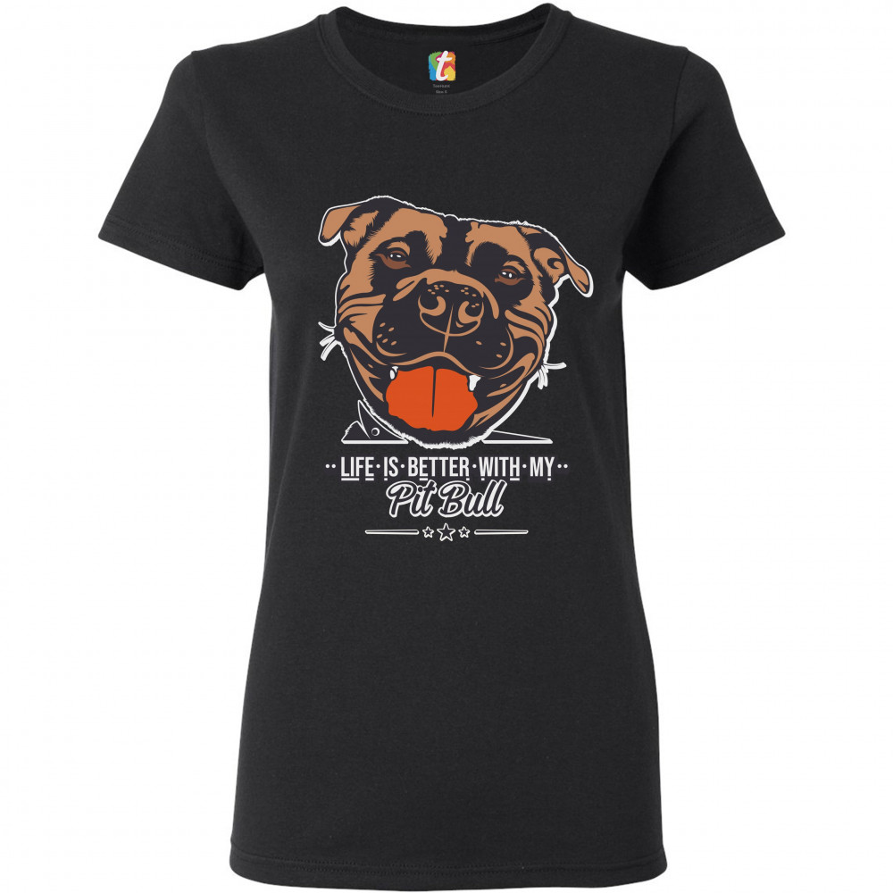 LIFE IS BETTER WITH MY PIT BULL t-shirt i love me dog animal lover women's tee black