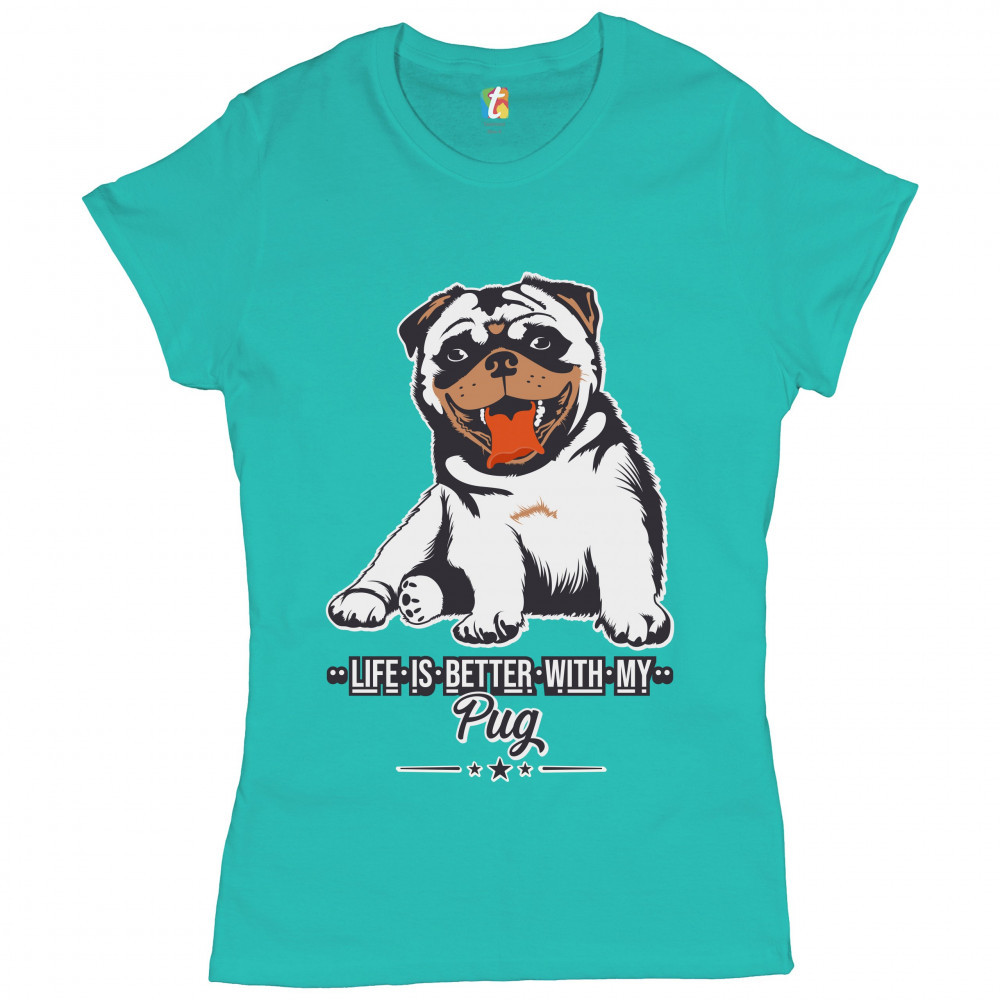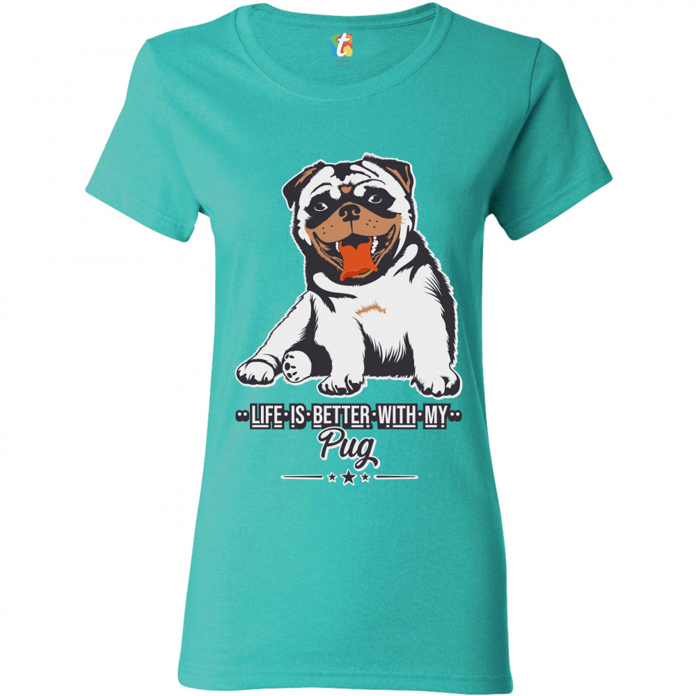 LIFE IS BETTER WITH MY PUG t-shirt cute pet adorable dog breed women's tee light blue