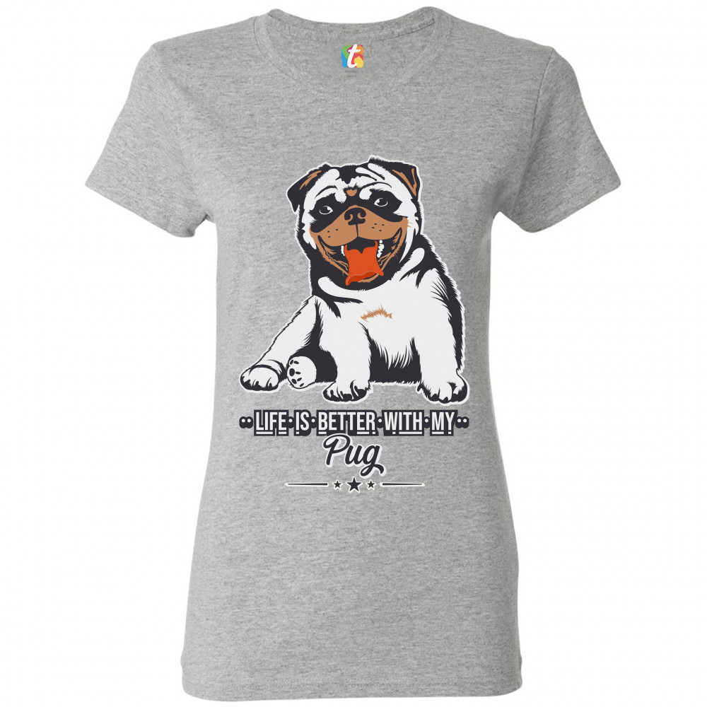 LIFE IS BETTER WITH MY PUG t-shirt cute pet adorable dog breed women's tee gray