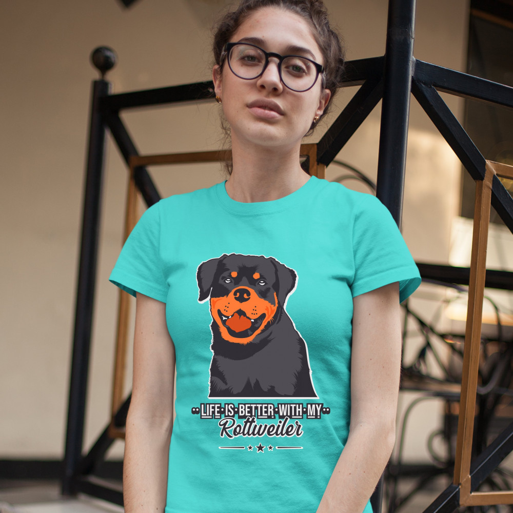 LIFE IS BETTER WITH MY ROTTWEILER t-shirt rottie pet dog lover women's tee light blue
