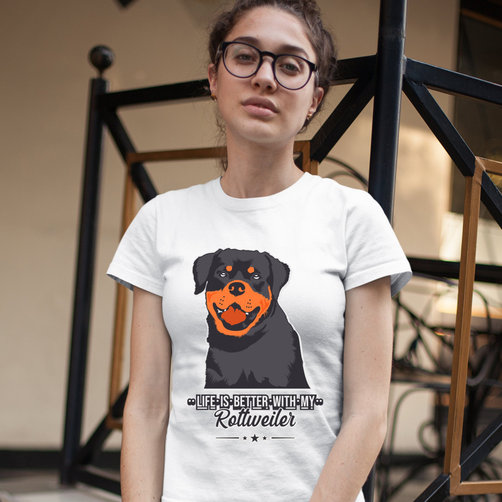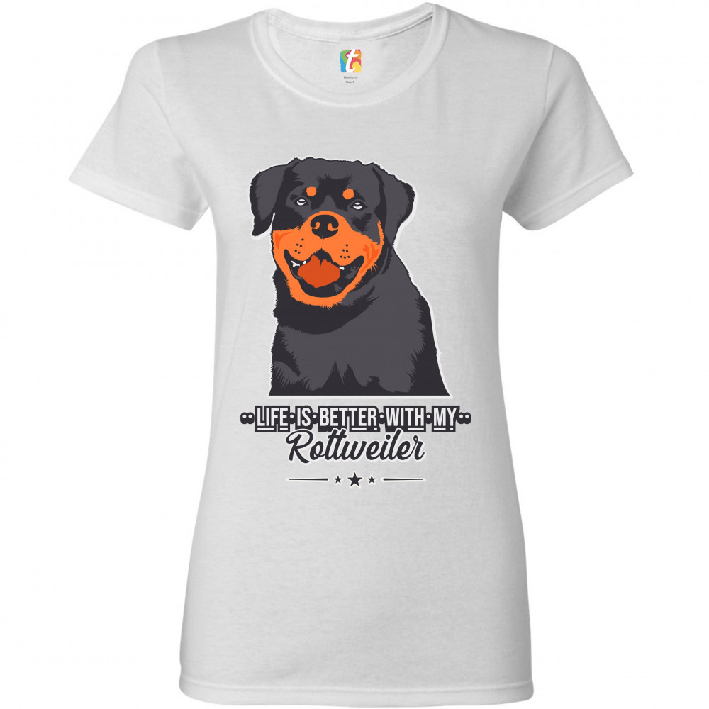 LIFE IS BETTER WITH MY ROTTWEILER t-shirt rottie pet dog lover women's tee white
