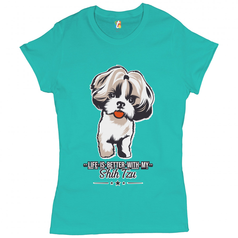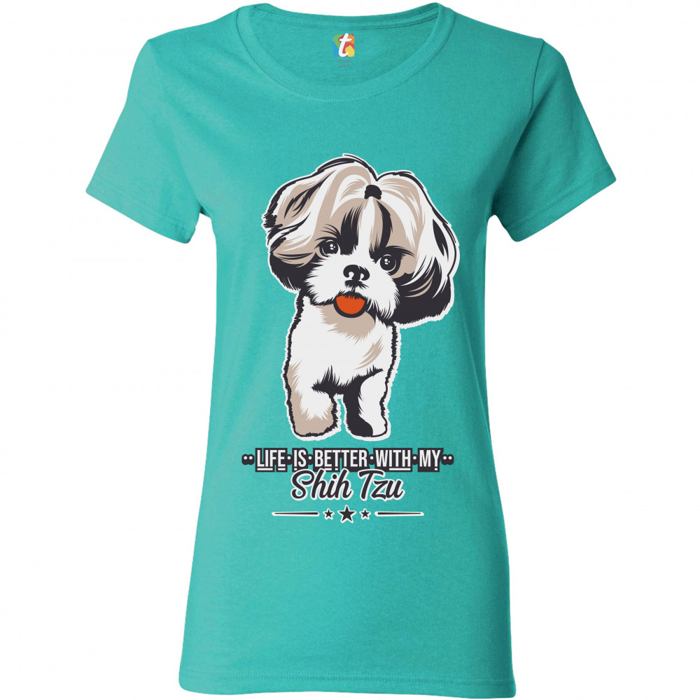 LIFE IS BETTER WITH MY SHIH TZU t-shirt small dog lover toy dog women's tee light blue