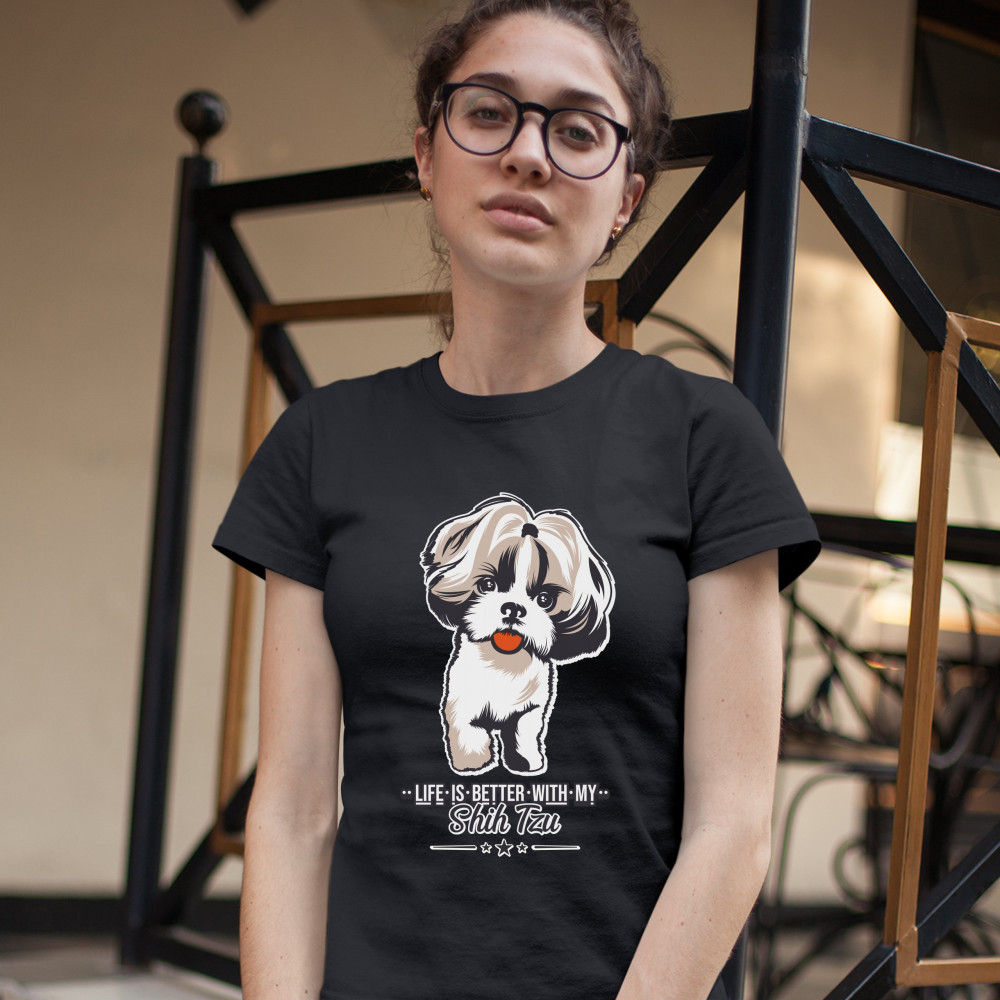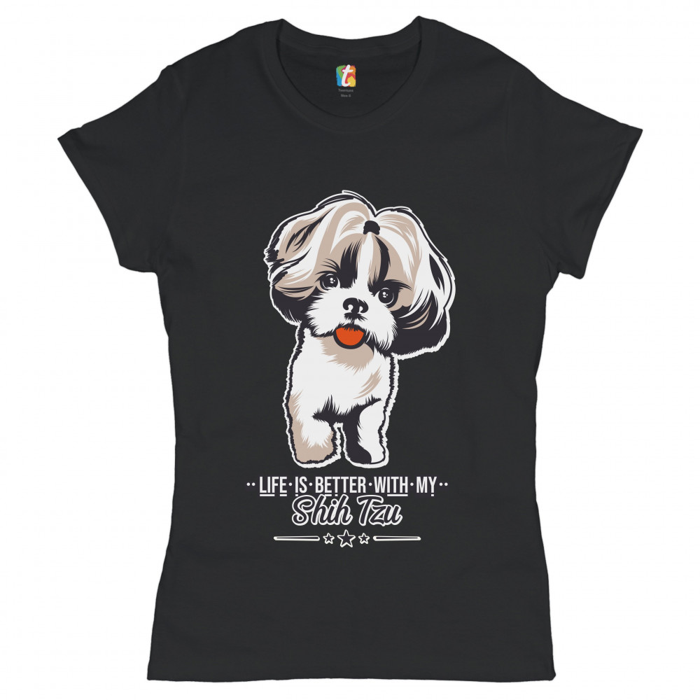 LIFE IS BETTER WITH MY SHIH TZU t-shirt small dog lover toy dog women's tee black