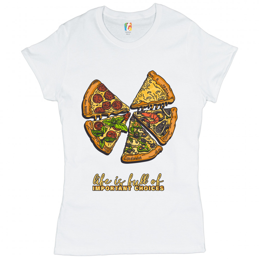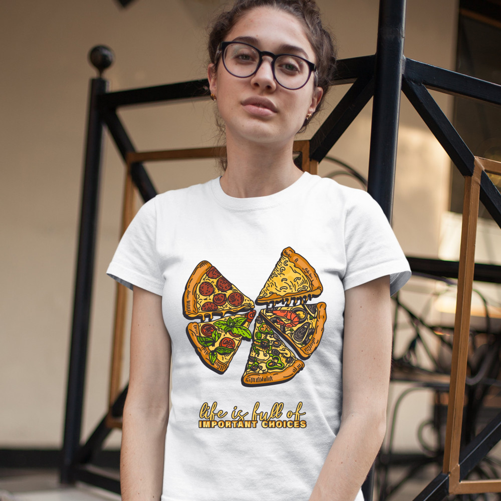 LIFE IS FULL OF IMPORTANT CHOICES t-shirt funny pepperoni pizza women's tee white