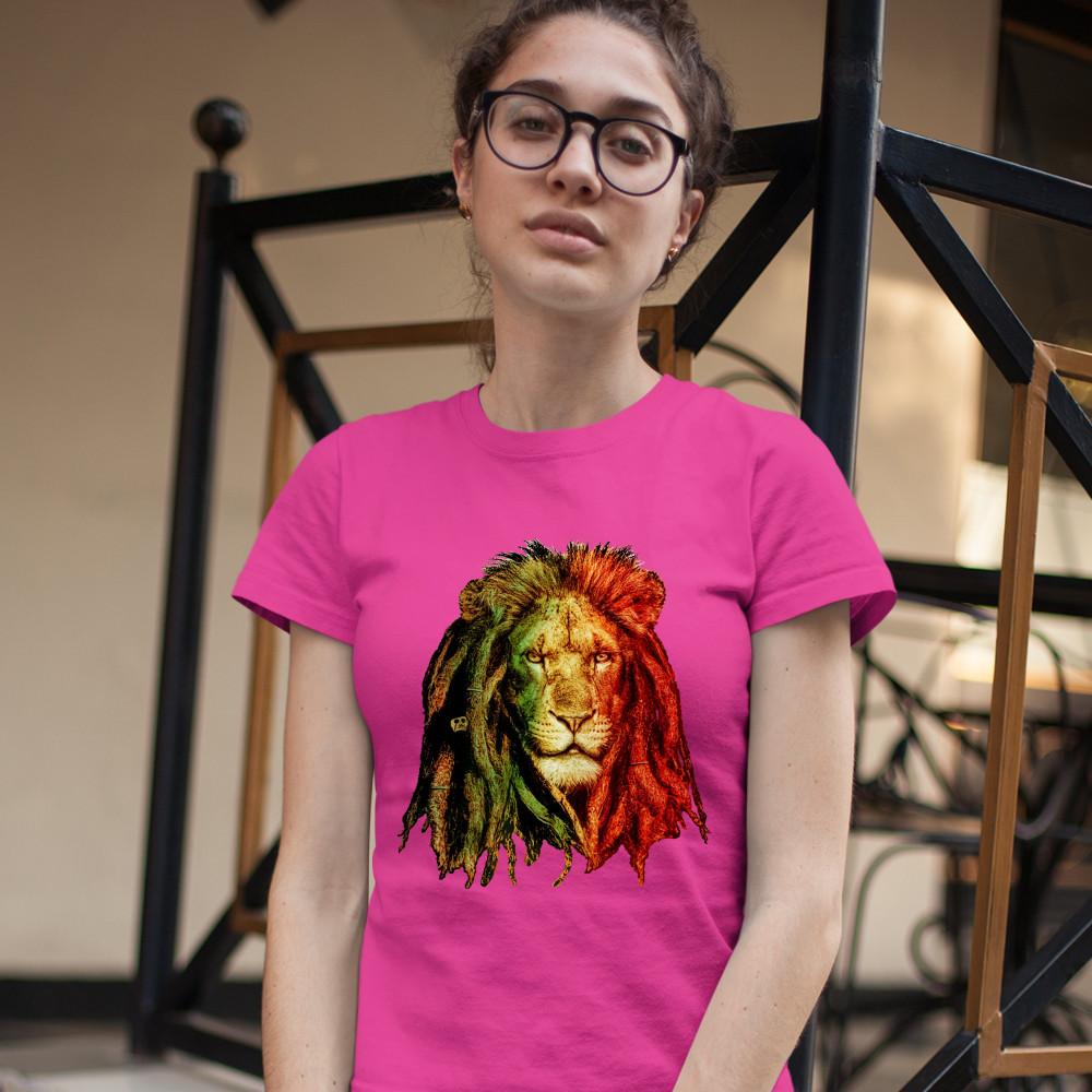 LION WITH DREADLOCKS t-shirt rastafari jah jamaica marijuana 420 women's tee pink