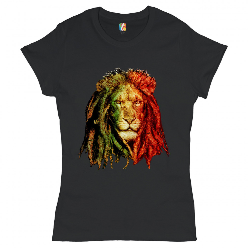 LION WITH DREADLOCKS t-shirt rastafari jah jamaica marijuana 420 women's tee black