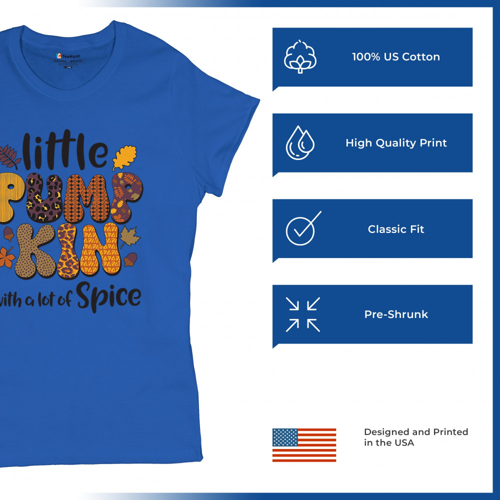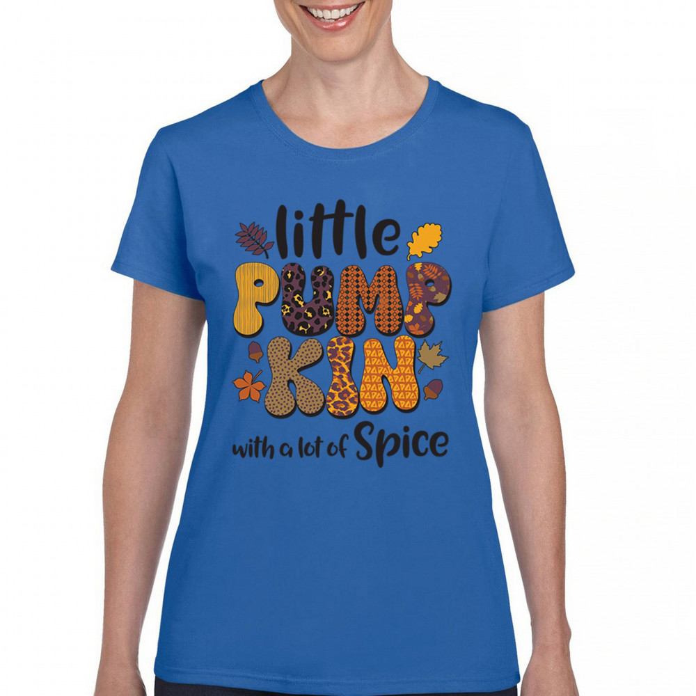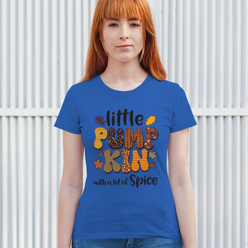 Spice up your fall wardrobe with this 'Little Pumpkin with a Lot of Spice' design, perfect for adding a festive touch to your seasonal outings. Whether you're visiting the pumpkin patch or enjoying a cozy autumn night, this playful design is a fun and vibrant way to embrace the fall spirit. Ideal for Thanksgiving, Halloween, and beyond!