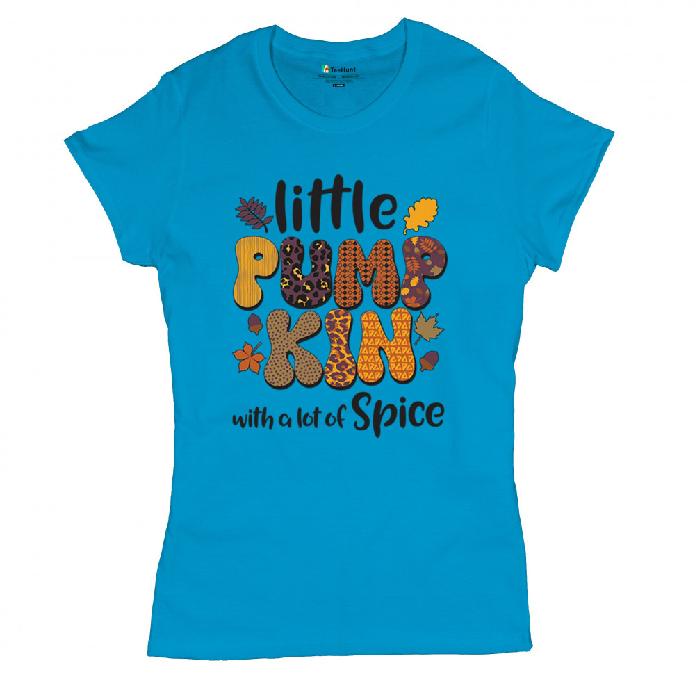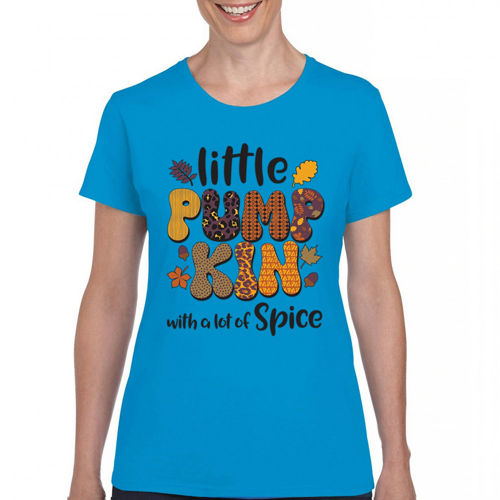 Celebrate the fall season with this playful 'Little Pumpkin with a Lot of Spice' design, perfect for festive gatherings and pumpkin patch visits.