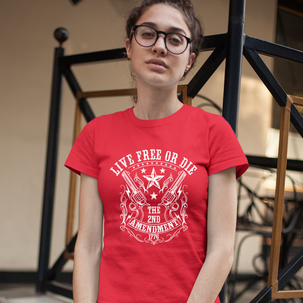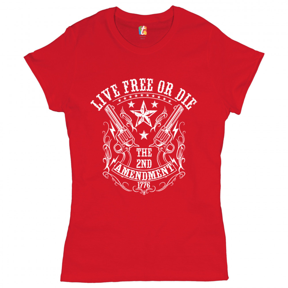 LIVE FREE OR DIE t-shirt the 2nd amendment 1776 patriotic gun owner women's tee red