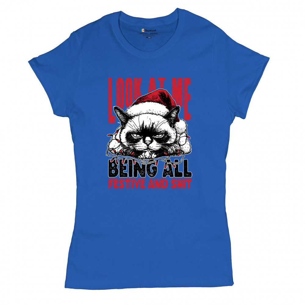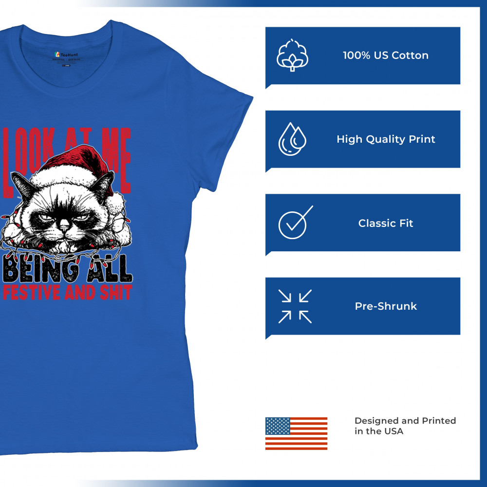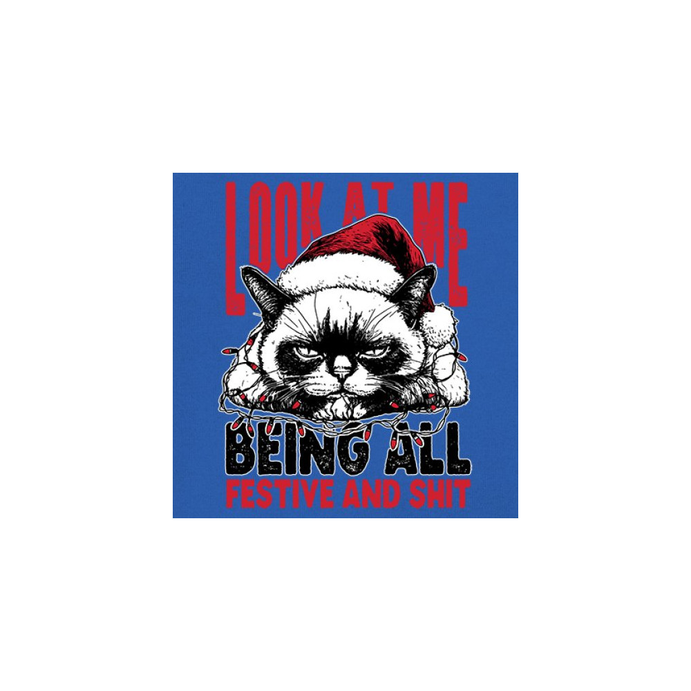 Grumpy Cat Christmas design with Santa hat, Christmas tree humor, Let It Snow vibes, Jingle Bells style, and sarcastic Merry Xmas spirit.