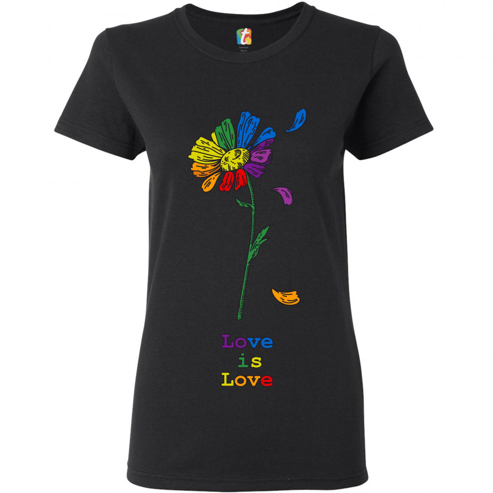 LOVE IS LOVE t-shirt rainbow flower lgbt acceptance gay pride women's tee black