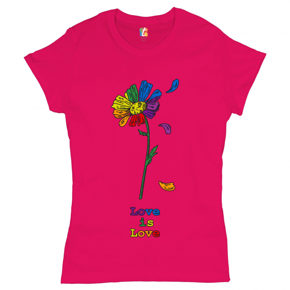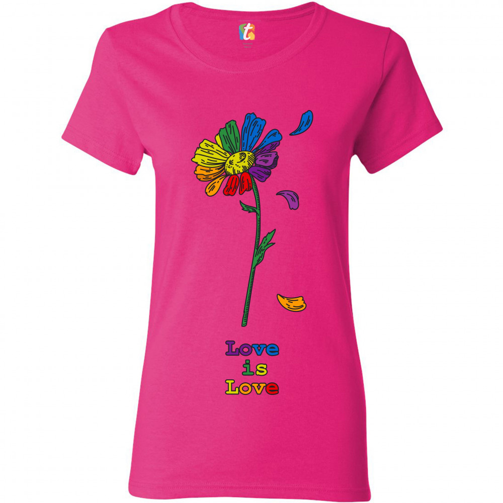 LOVE IS LOVE t-shirt rainbow flower lgbt acceptance gay pride women's tee pink