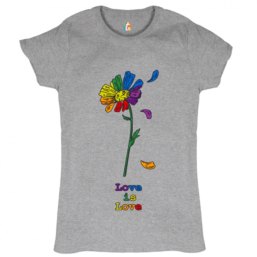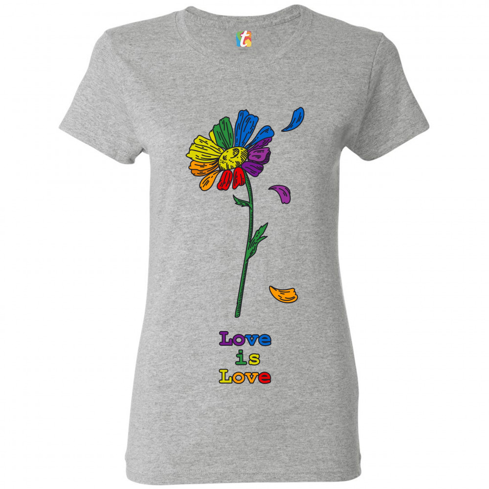 LOVE IS LOVE t-shirt rainbow flower lgbt acceptance gay pride women's tee gray