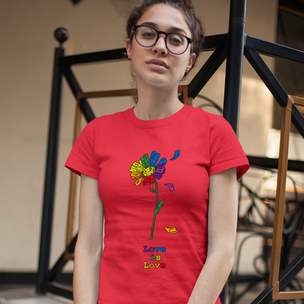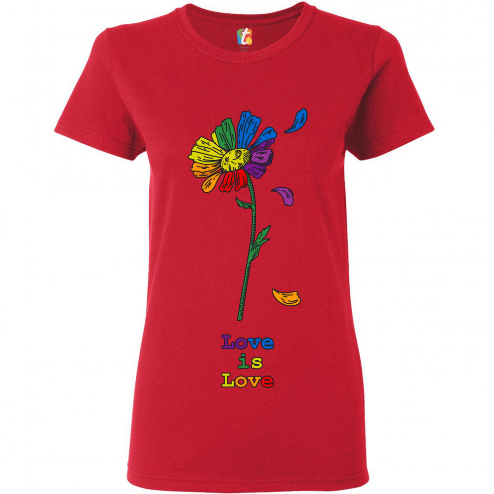 LOVE IS LOVE t-shirt rainbow flower lgbt acceptance gay pride women's tee red