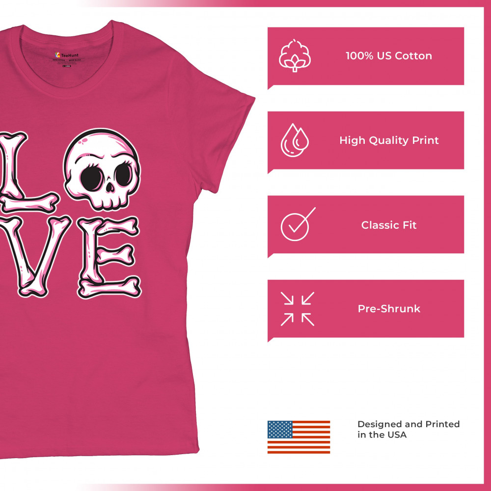 Pink skull love design with bones and gothic twist. Ideal for punk girls, goth couples, Halloween outfits, or spooky romantic gifts.