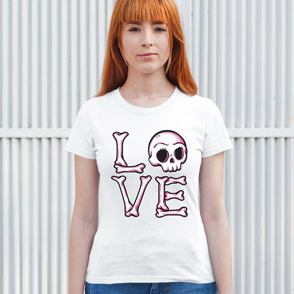 Celebrate spooky romance with this playful “LOVE†design made from pink bones and a cartoon skull. Perfect for goth girls, punk couples, and alt fashion fans, this design mixes Halloween style with sweet sentiment. Great for festivals, romantic gifts, or edgy everyday wear that breaks the rules of traditional love.