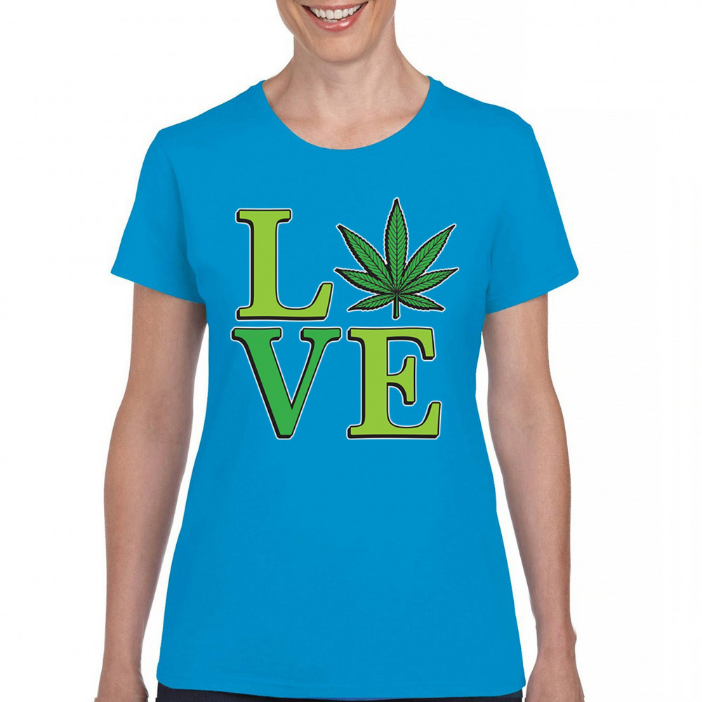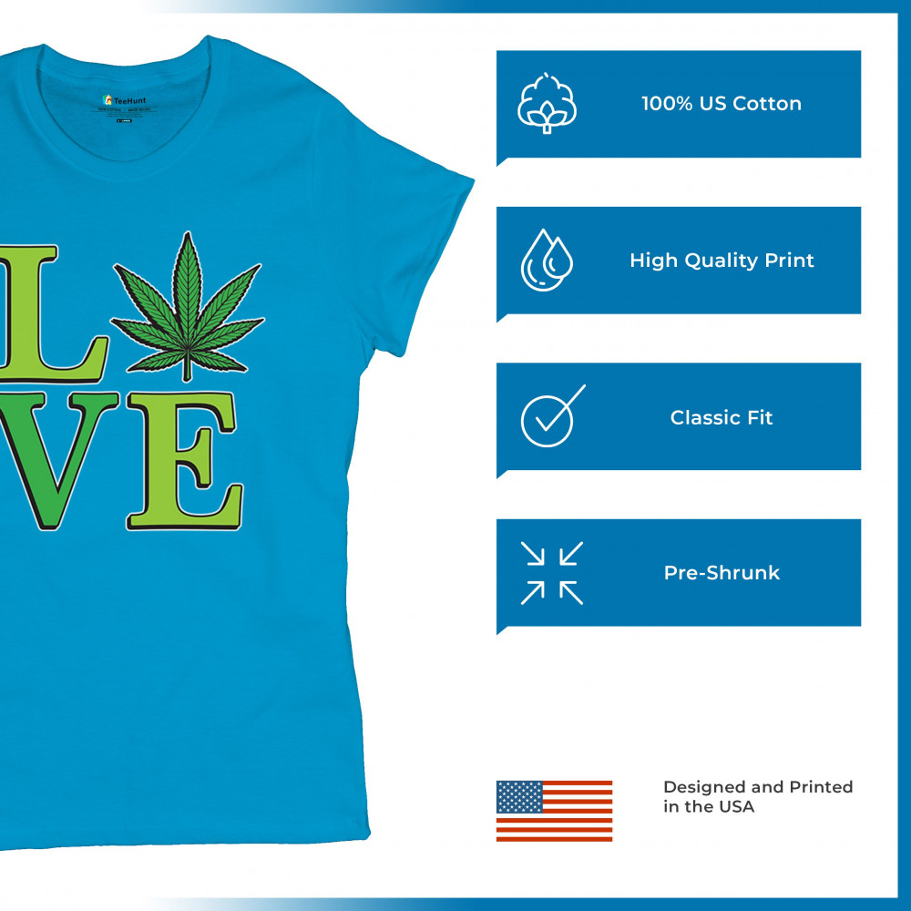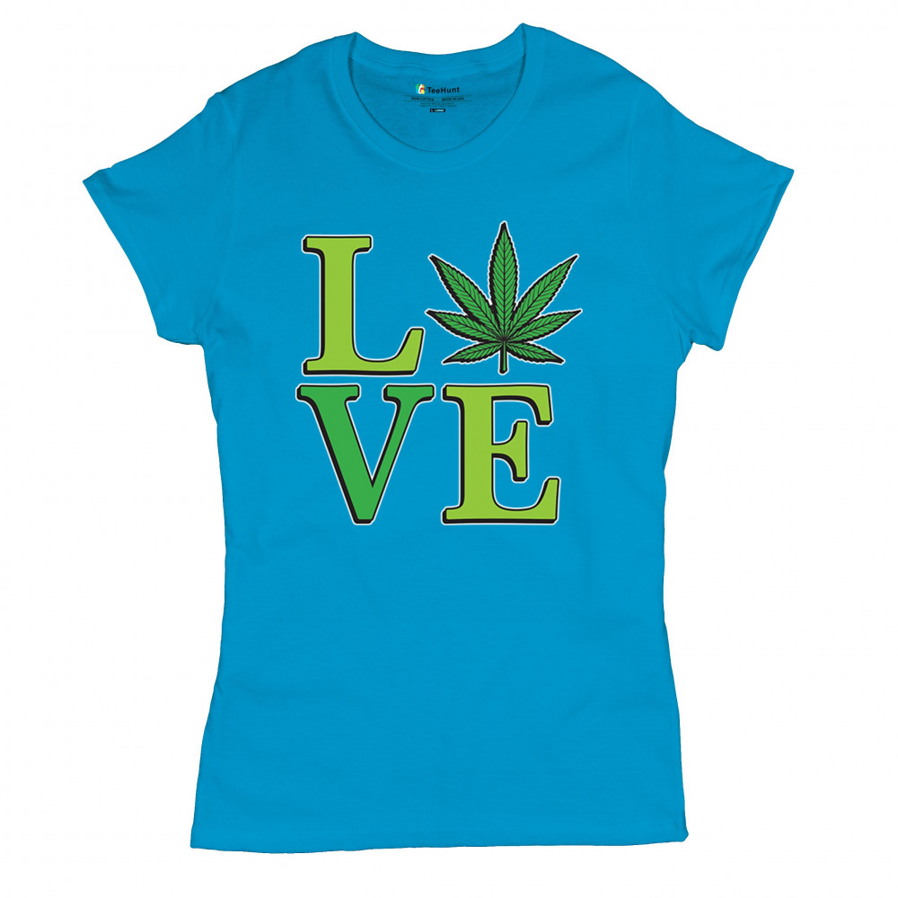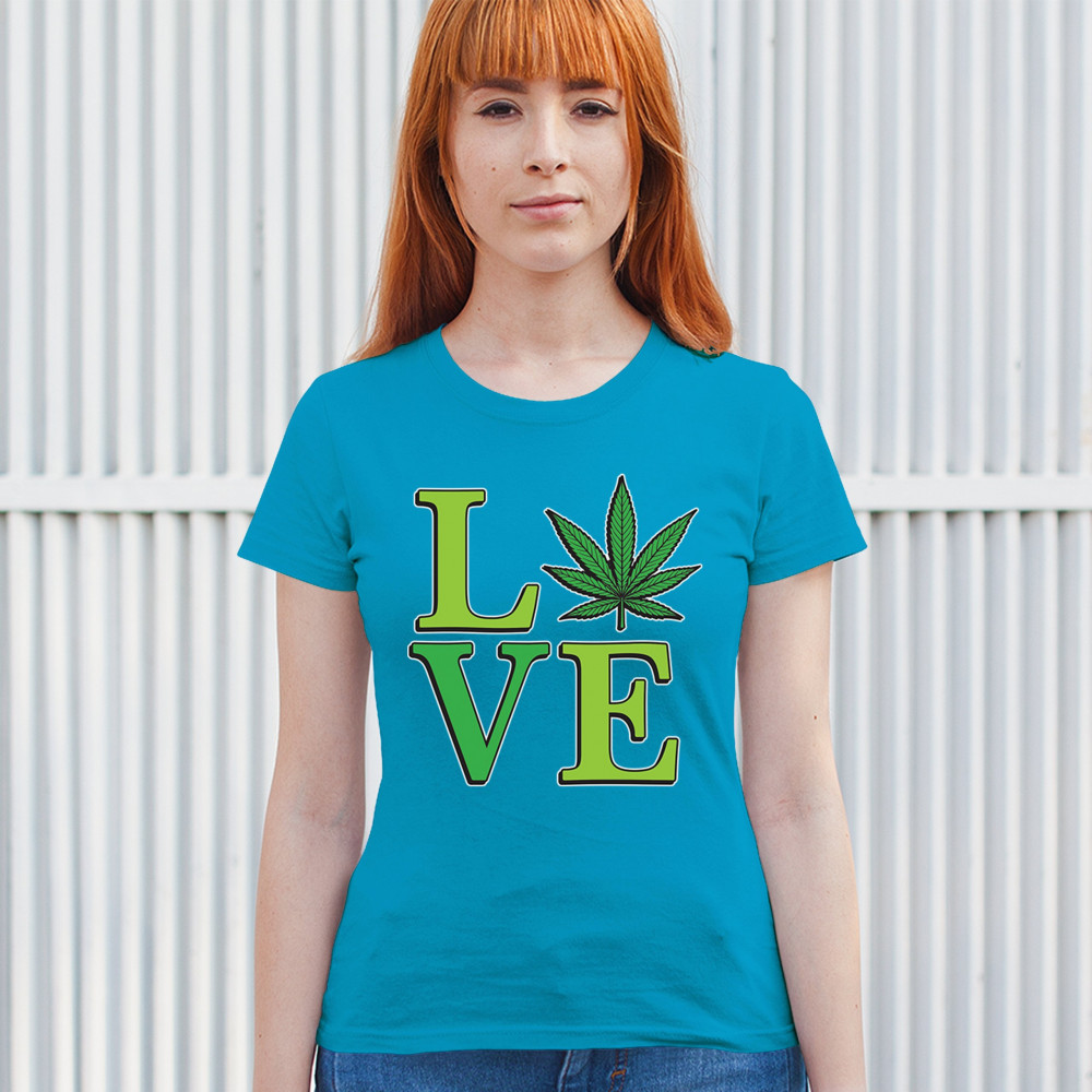 LOVE design with a bold weed leaf. Perfect for 420 fans, stoners, cannabis lifestyle wear, green pride, and marijuana lovers.