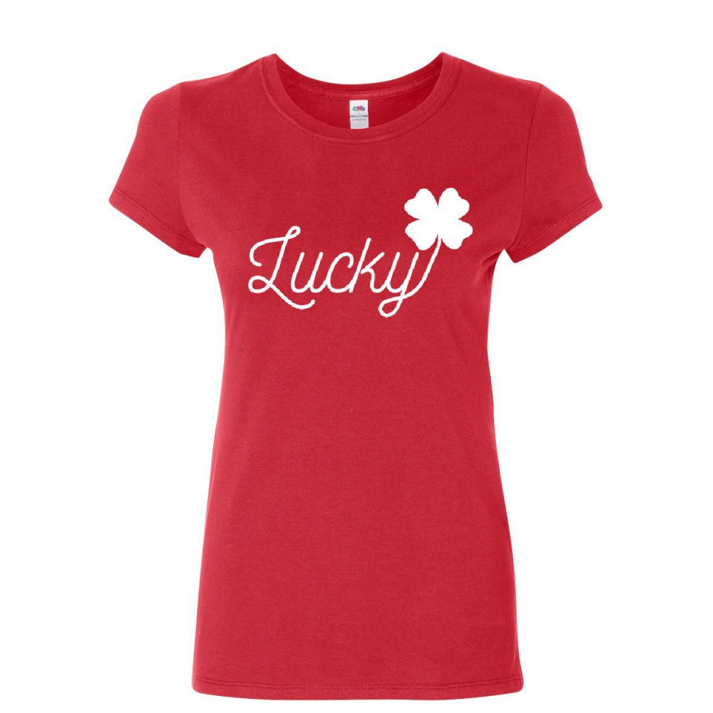 LUCKY SHAMROCK lucky irish women's t-shirt st. patrick's day shamrock pub beer drinking shirt red