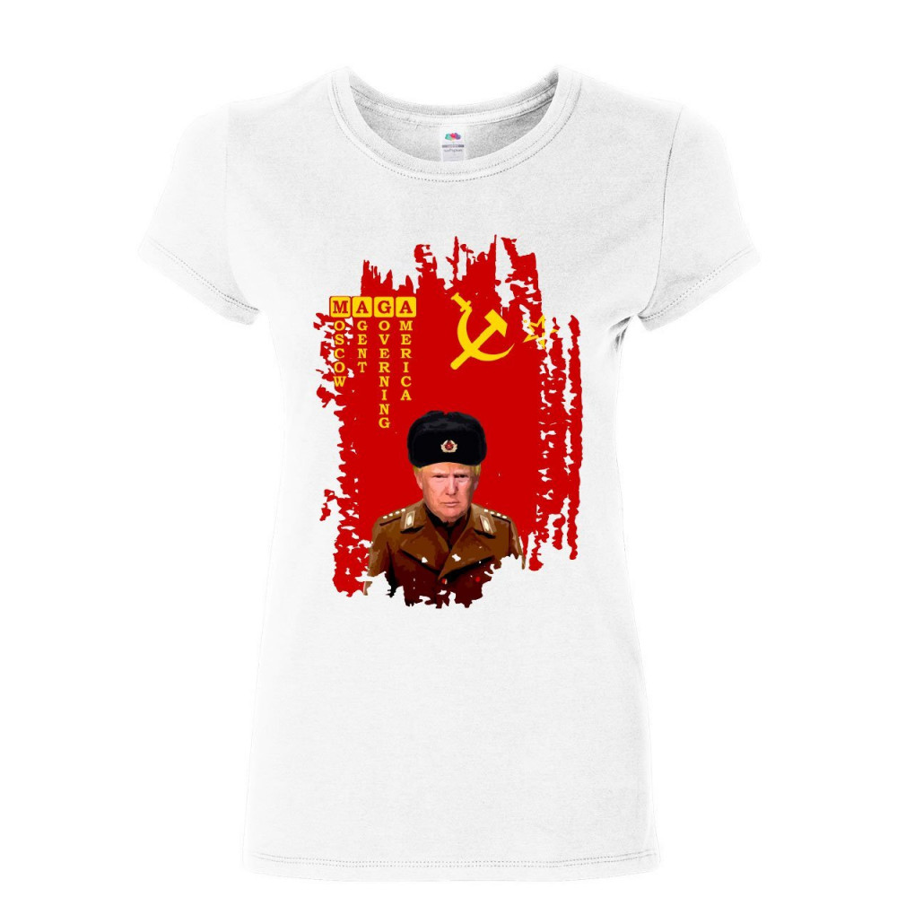MAGA COMRADE TRUMP women's t-shirt funny soviet flag ussr russian agent shirt white