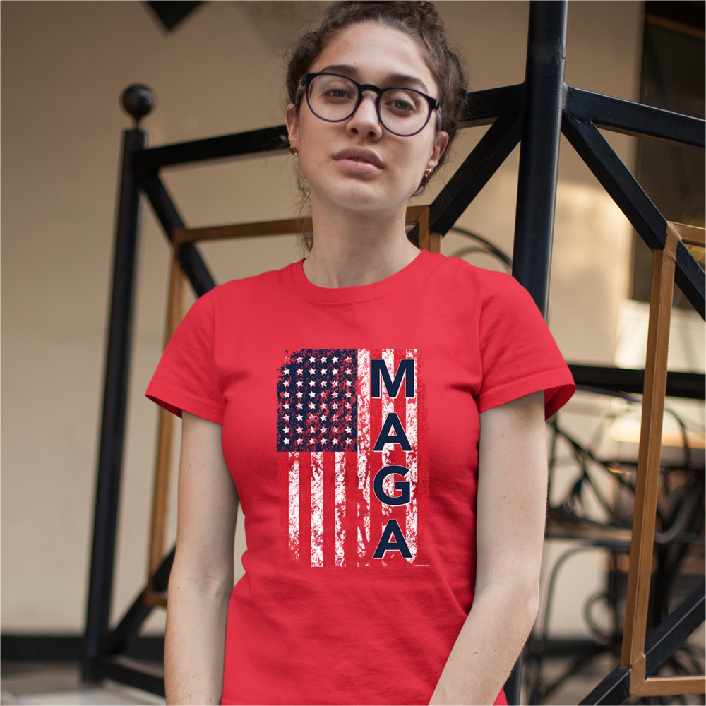 MAGA FLAG t-shrit donald trump 2020 flag keep america great women's tee red