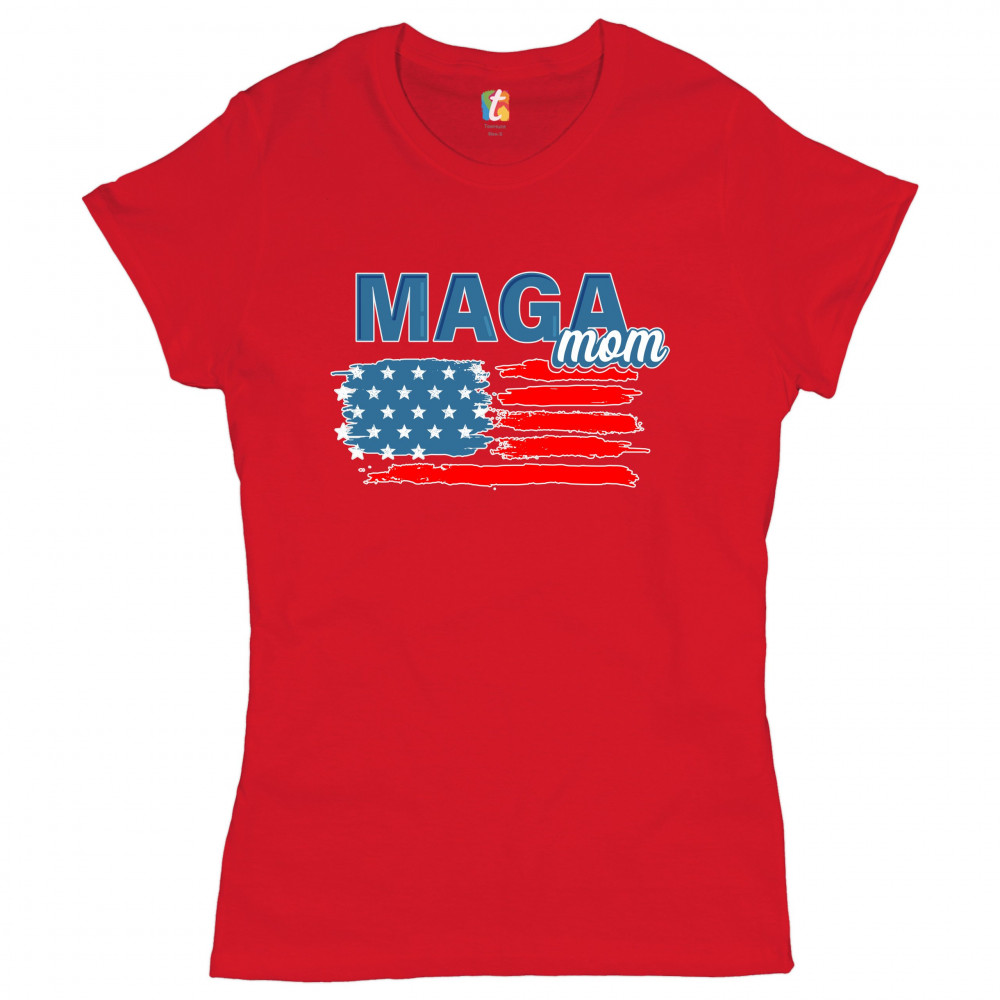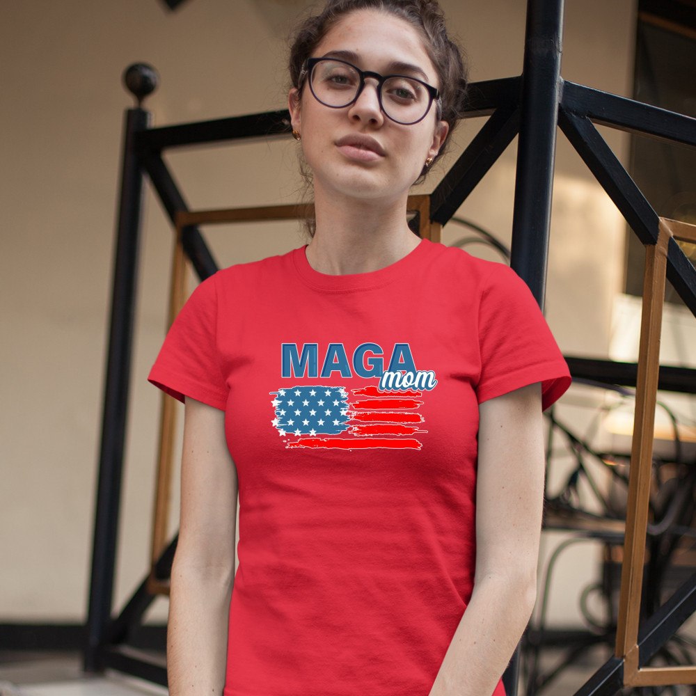 MAGA MOM AMERICAN FLAG t-shirt donald trump 2020 keep america great women's tee red