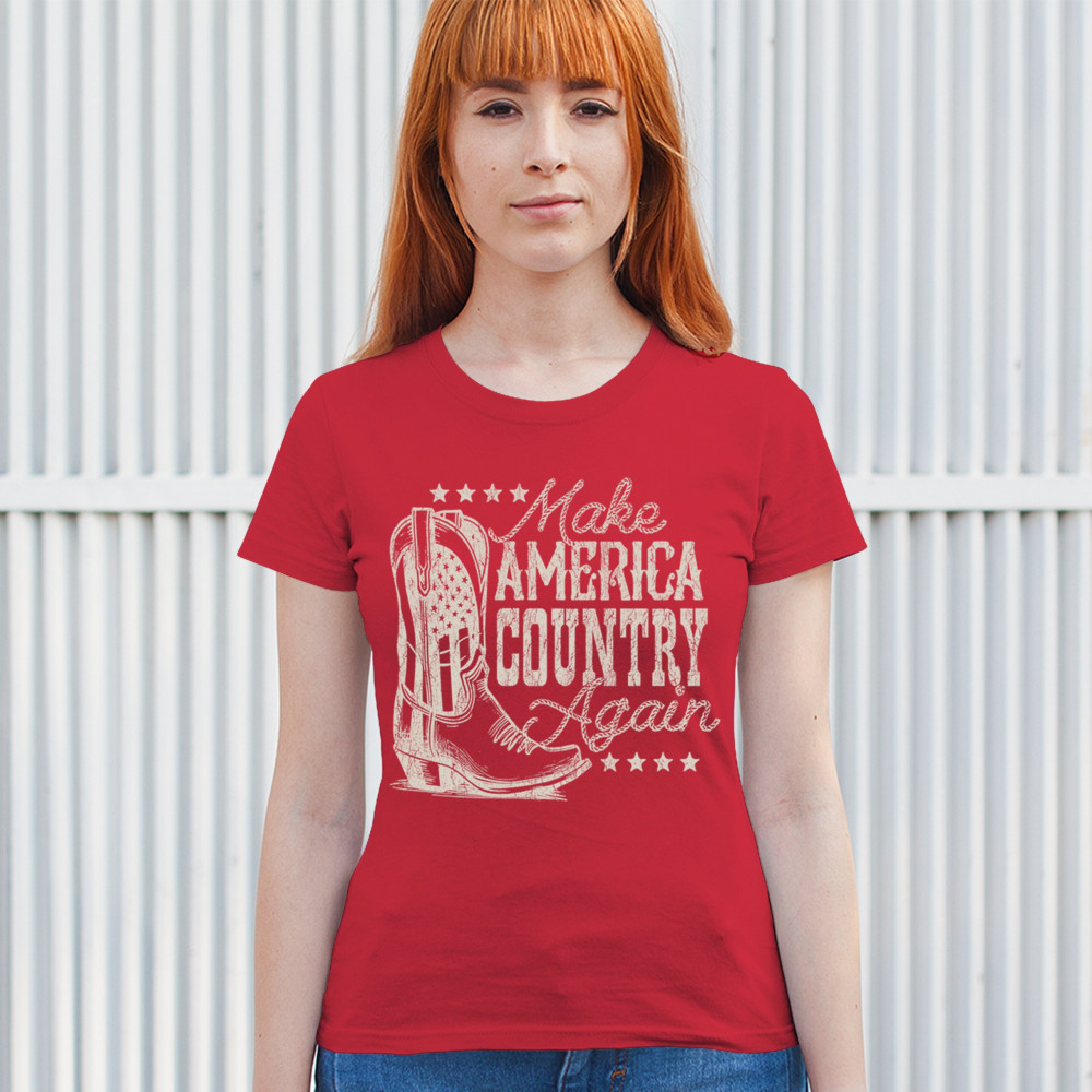 Bold patriotic country boot design with rustic flair. Perfect for rodeos, concerts, and anyone who wants to Make America Country Again.