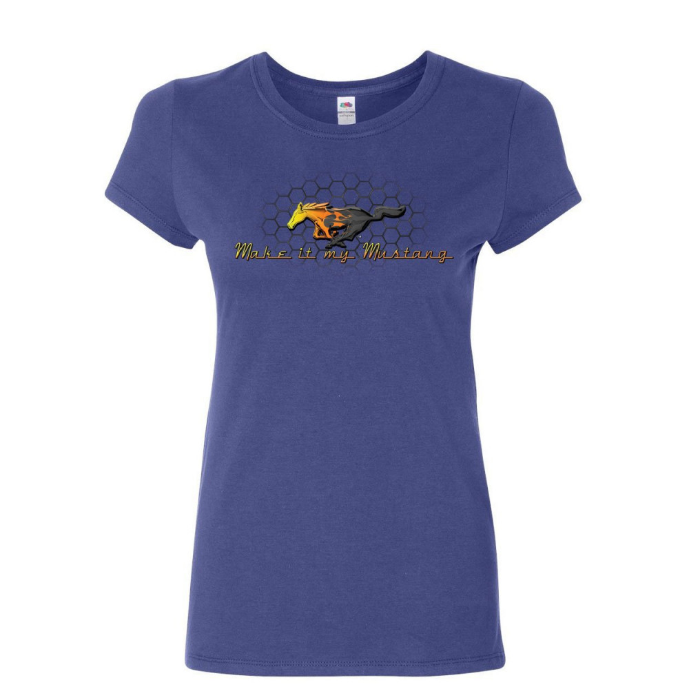 MAKE IT MY MUSTANG women's t-shirt honeycomb american classic fire horse shirt blue