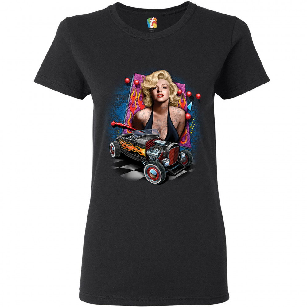 MARILYN MONROE HOT ROD t-shirt vintage route 66 drag racing women's tee black