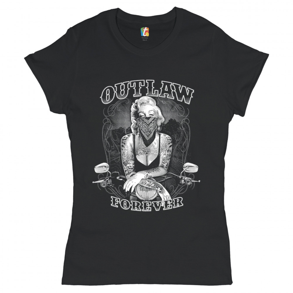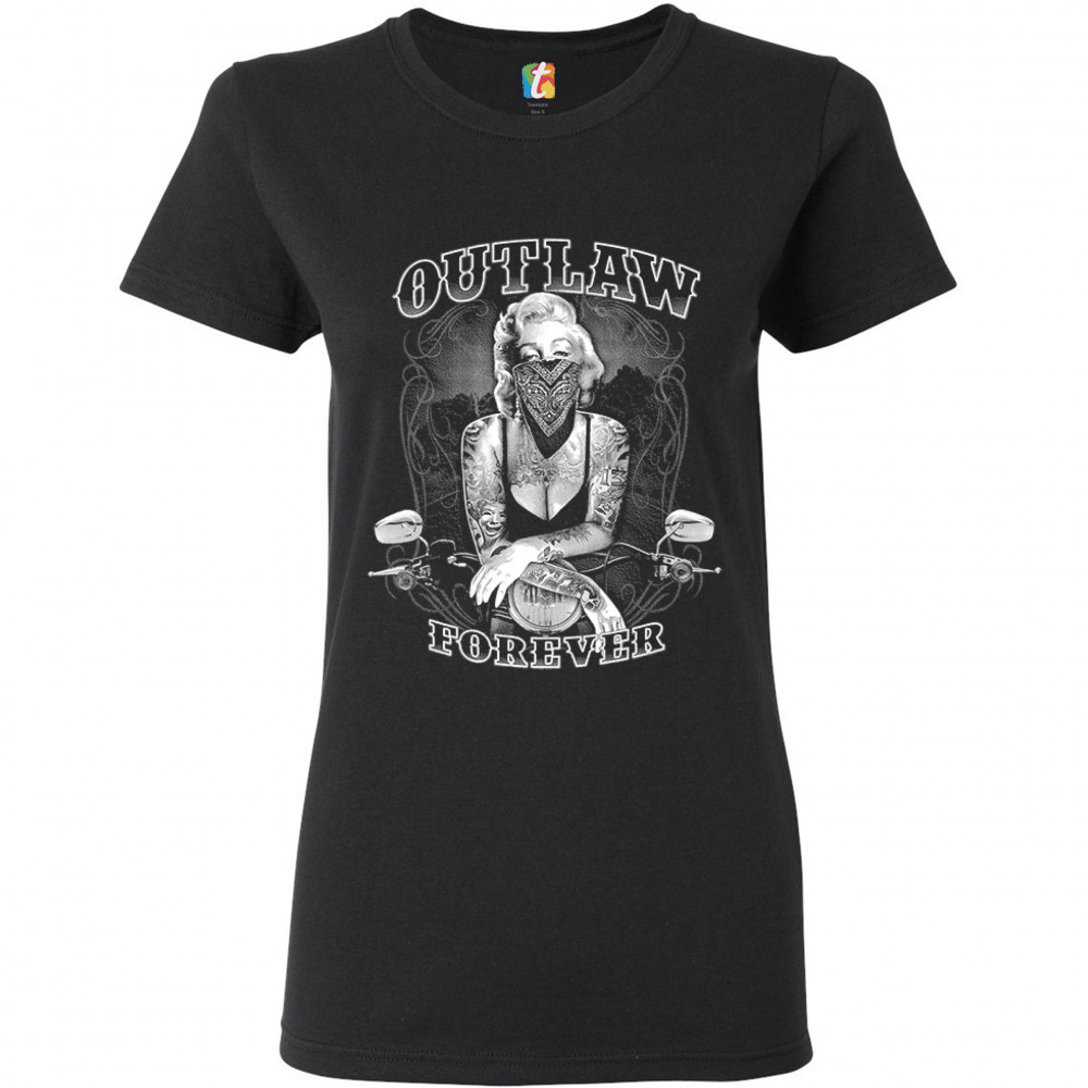MARILYN MONROE OUTLAW FOREVER t-shirt biker live to ride motorcycle women's tee black