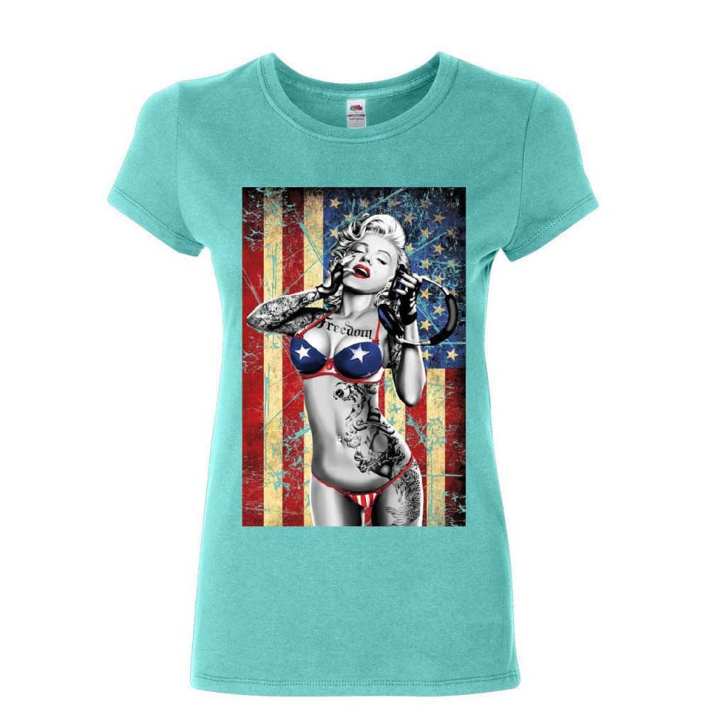 SEXY MARILYN MONROE US FLAG marilyn monroe us flag women's t-shirt freedom sexy girl tattoos gangsta shirt light blue