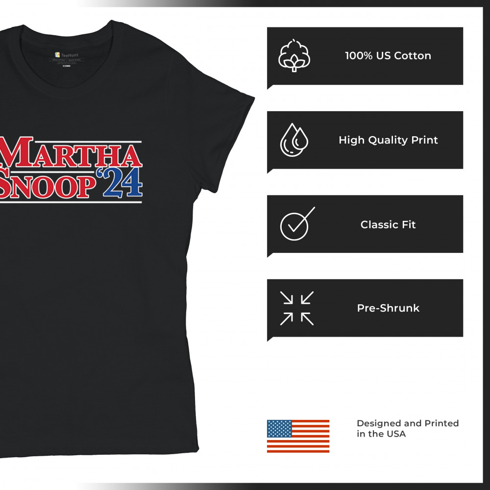 Elevate your casual wardrobe with our "Martha Snoop '24" design, a perfect mix of humor and pop culture. Ideal for fans of the iconic duo, this design merges political satire with entertainment flair. Crafted from premium materials, it ensures comfort and durability. Wear it to parties, casual outings, or just at home to express your unique style and sense of humor. This graphic is a great conversation starter and a fantastic gift for friends and family who appreciate a good laugh and love for pop culture icons.