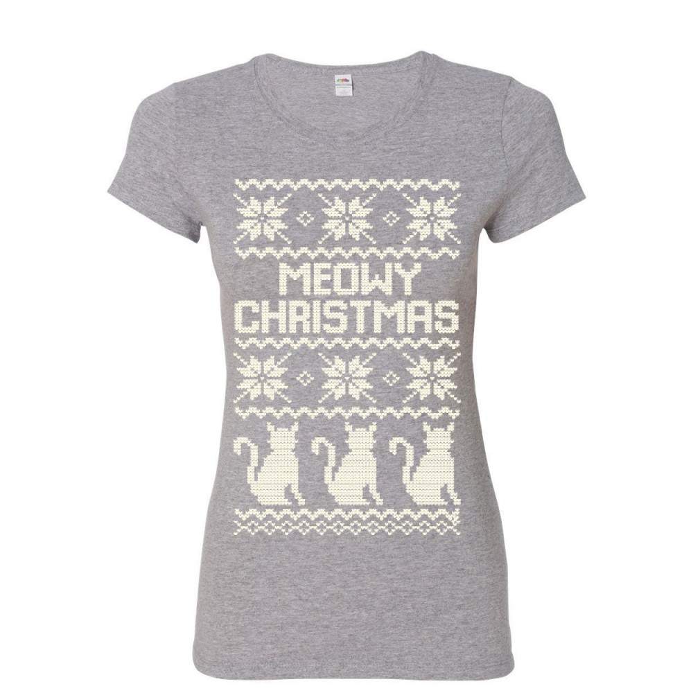 MEOWY CHRISTMAS women's t-shirt cat christmas xmas ugly sweatshirt cotton tee gray