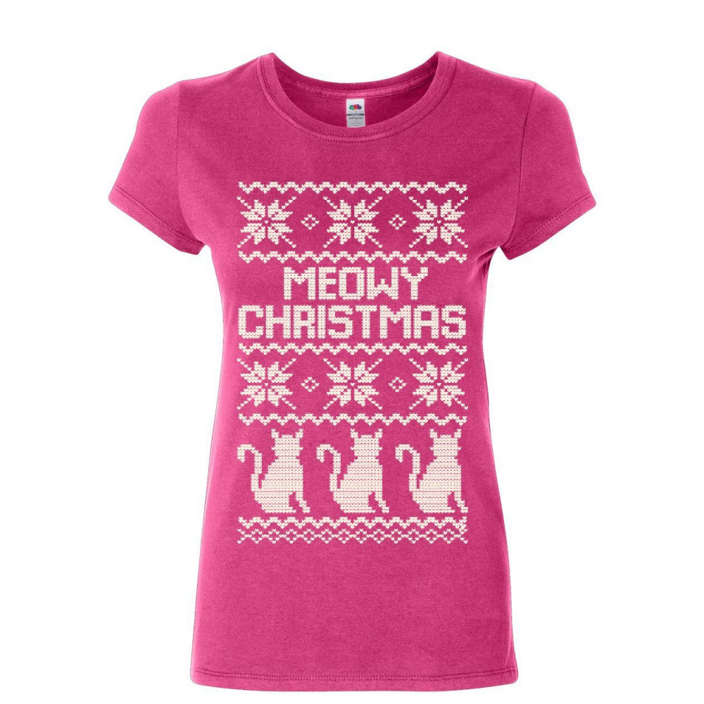 MEOWY CHRISTMAS women's t-shirt cat christmas xmas ugly sweatshirt cotton tee pink