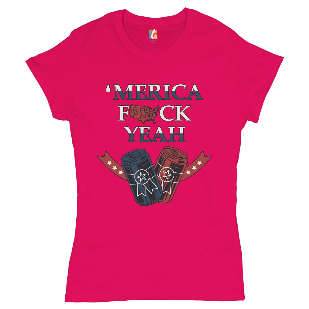 MERICA F*CK YEAH t-shirt patriotic american pride drinking beer women's tee pink