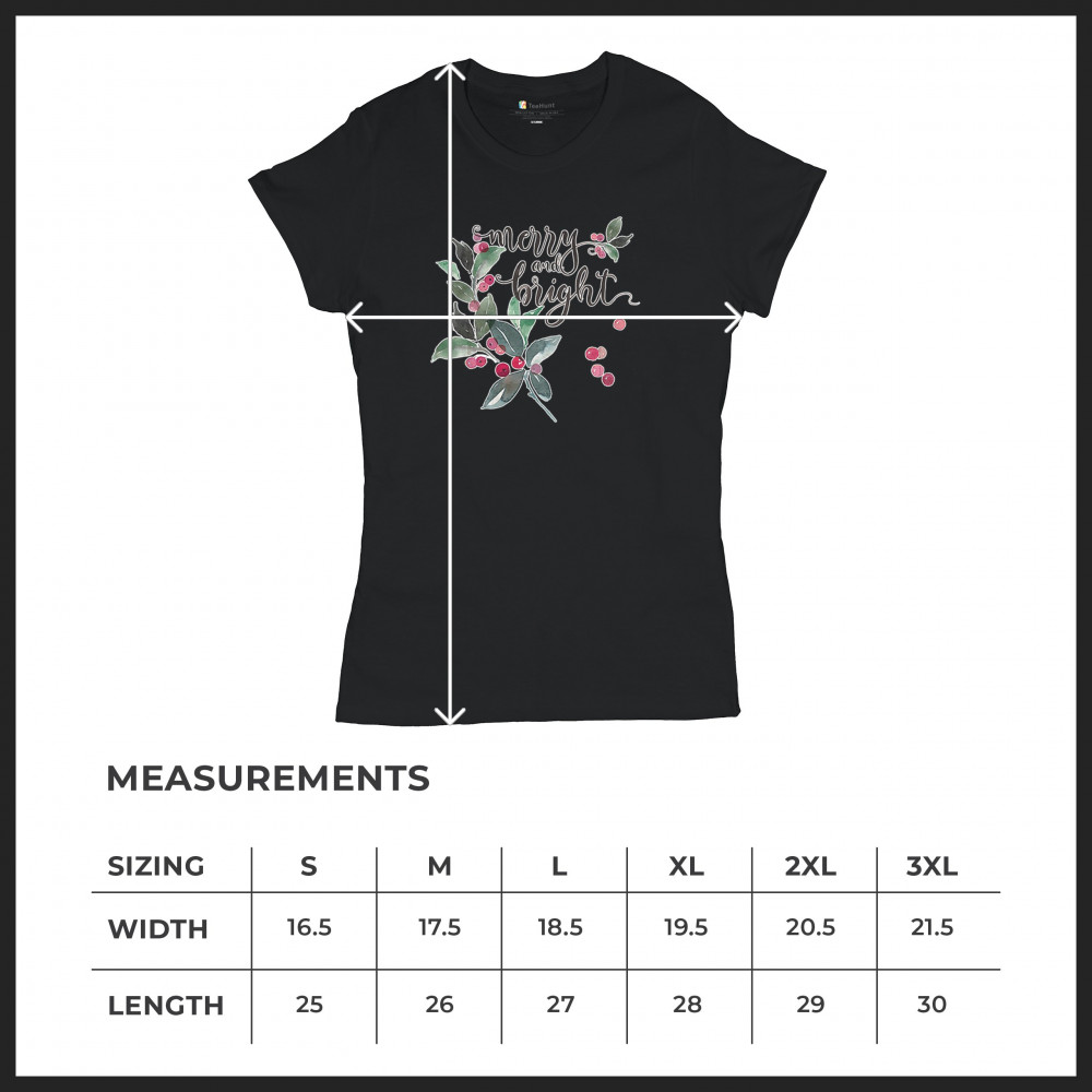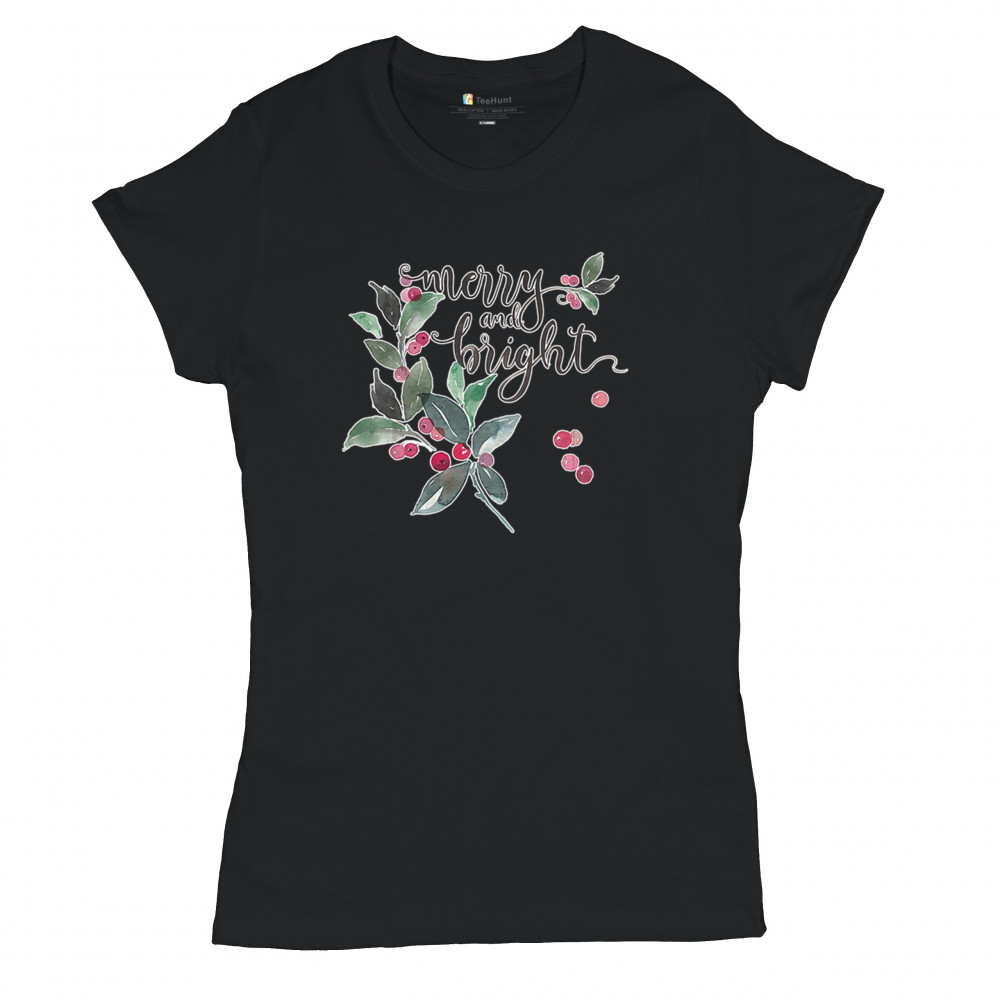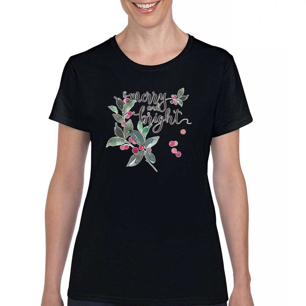 MERRY AND BRIGHT CUTE CHRISTMAS t-shirt jolly santa clause xmas women's tee black