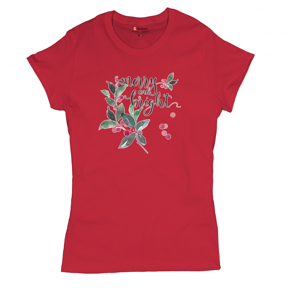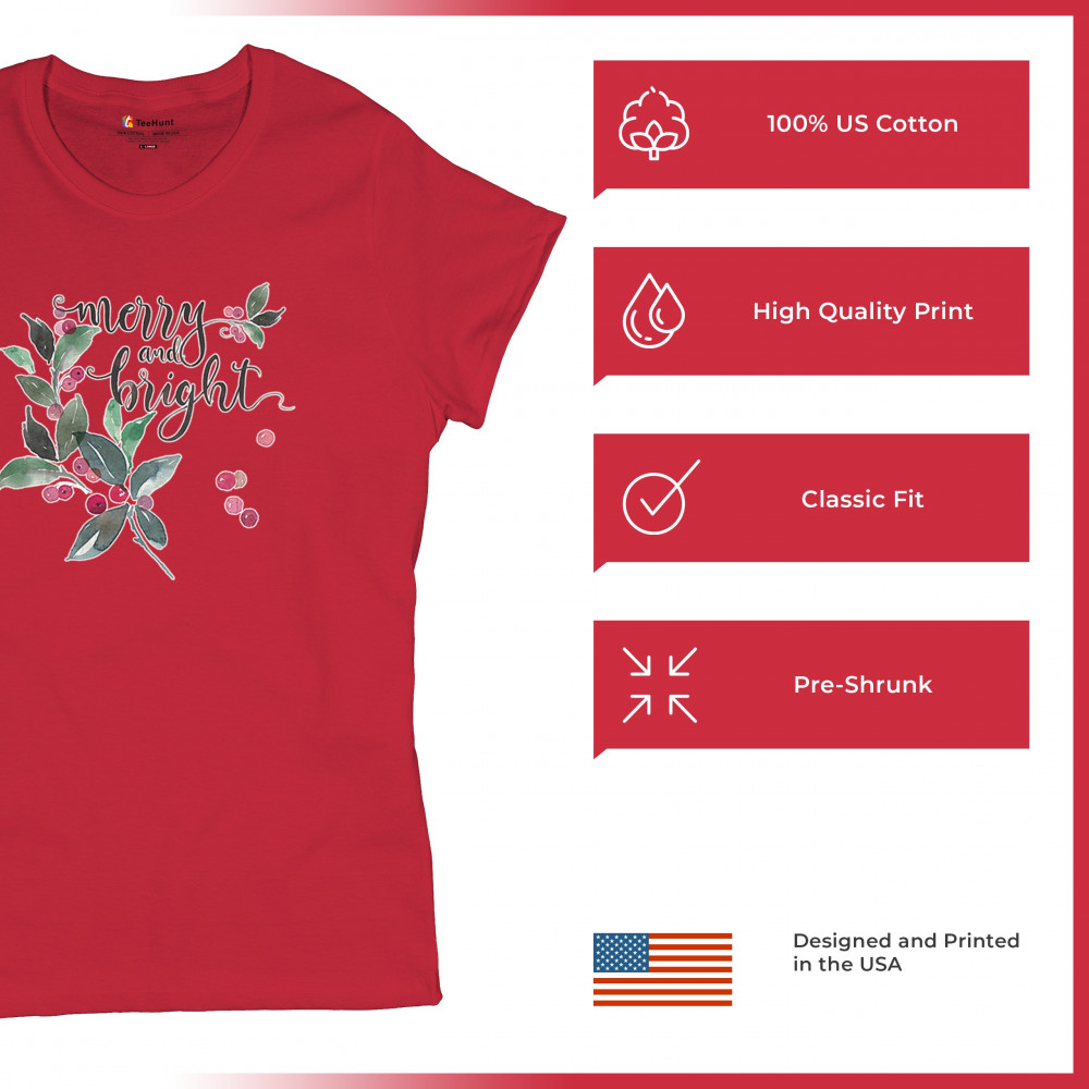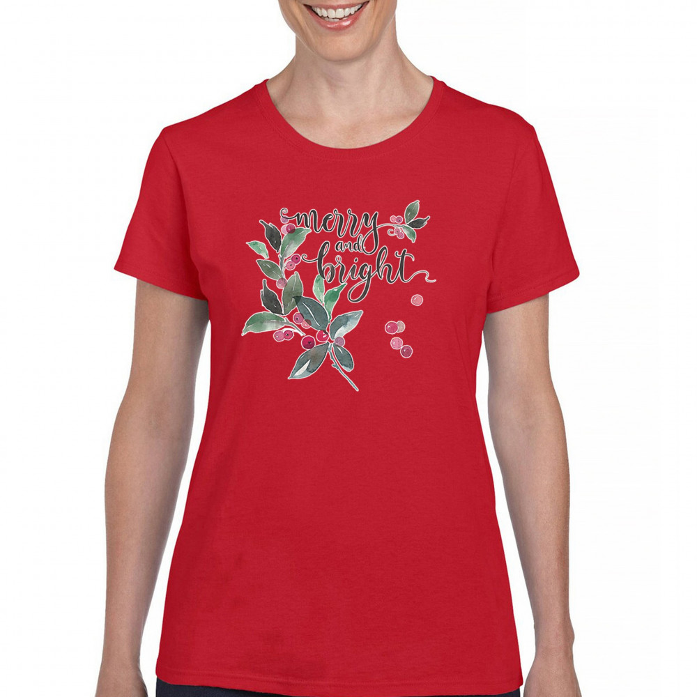 MERRY AND BRIGHT CUTE CHRISTMAS t-shirt jolly santa clause xmas women's tee red