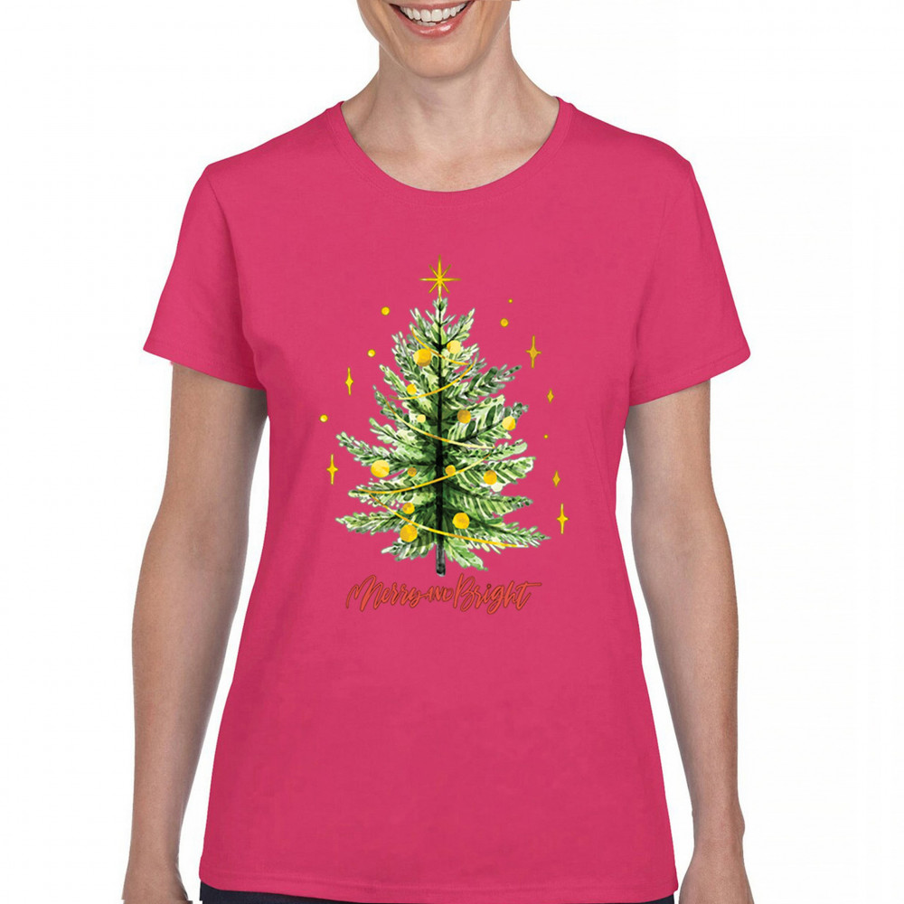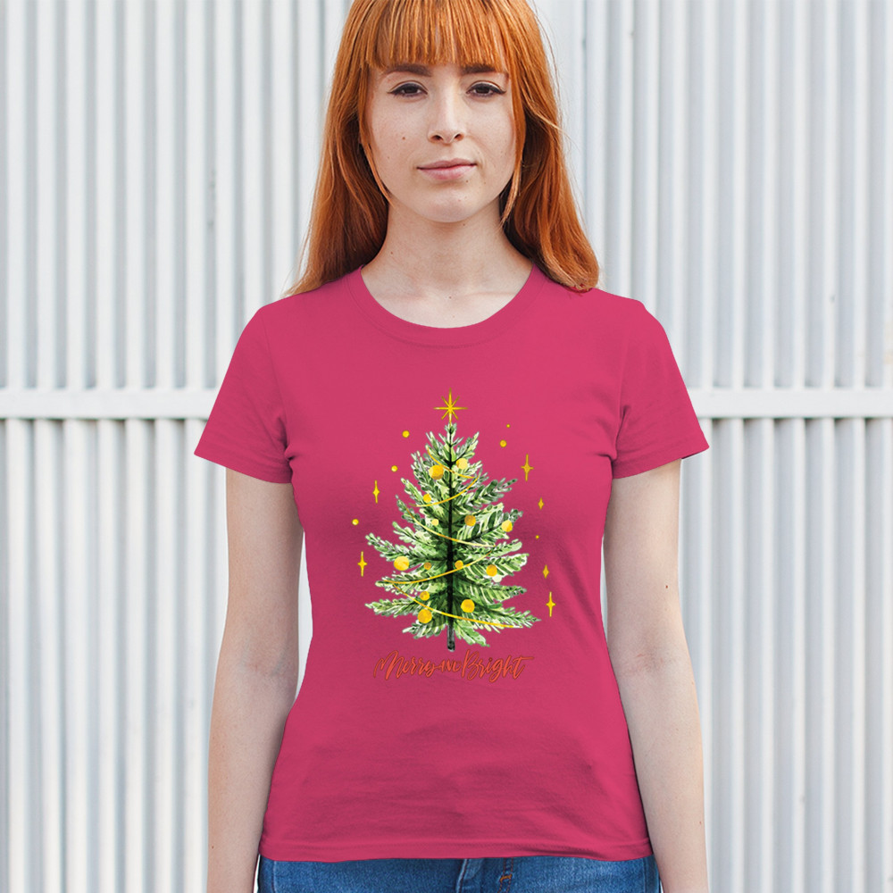 Festive “Merry and Bright†shirt featuring a joyful Christmas tree. Perfect for holiday gatherings, office parties, or Secret Santa gifts.