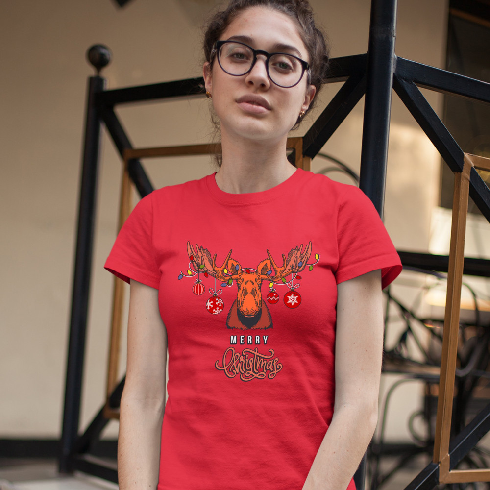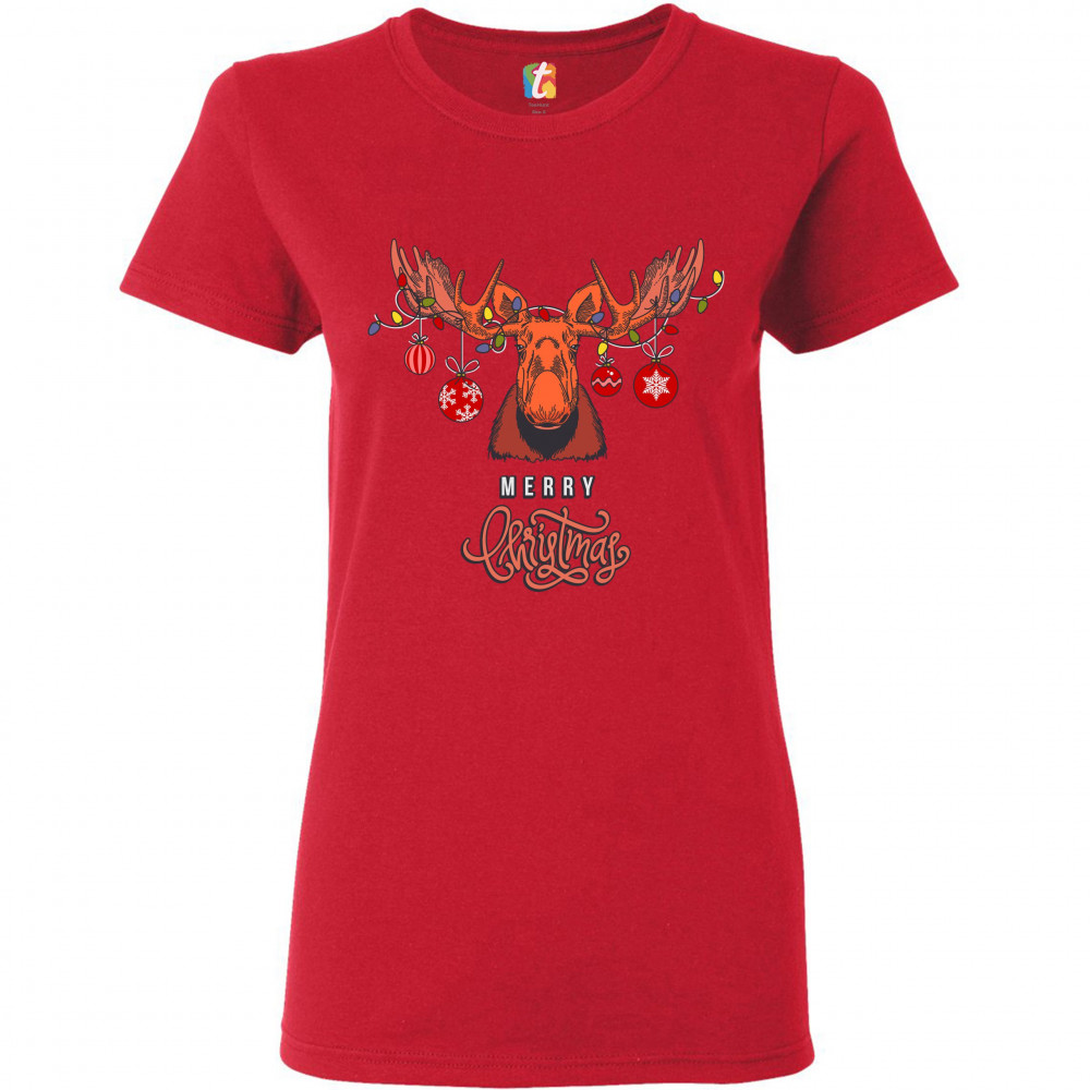 MERRY CHRISTMAS BUCK t-shirt reindeer rudolph holiday spirit women's tee red