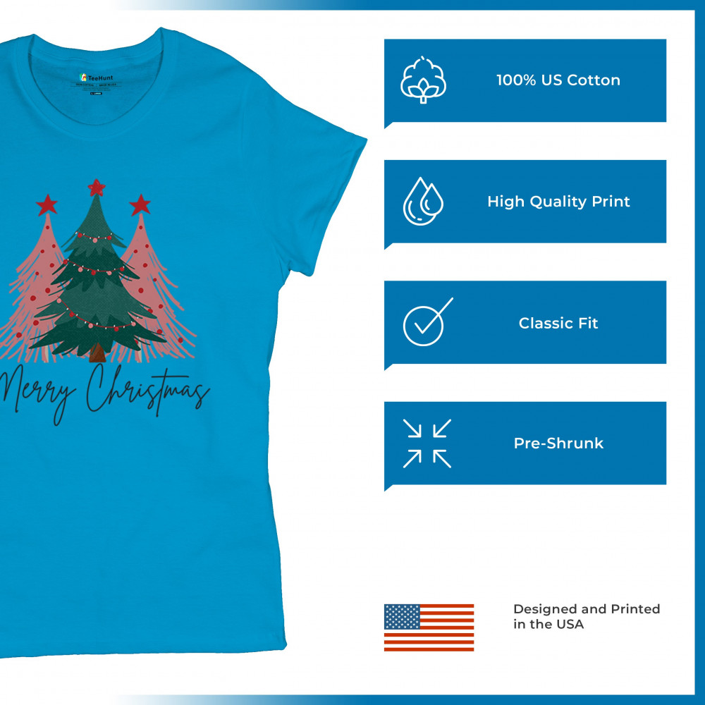 Festive pine tree design with lights, perfect for Christmas lovers, winter vibes, tree farm fans, and holiday gatherings.